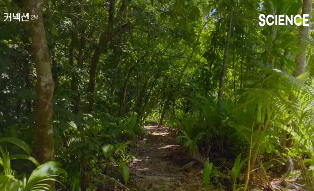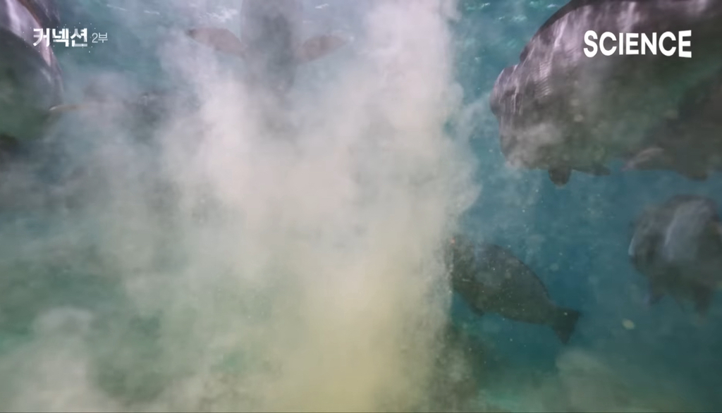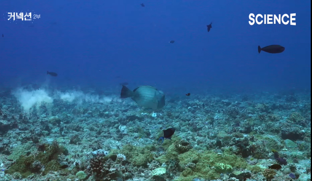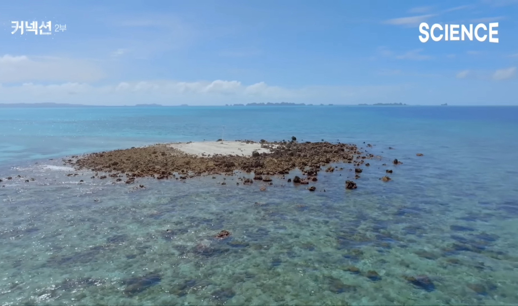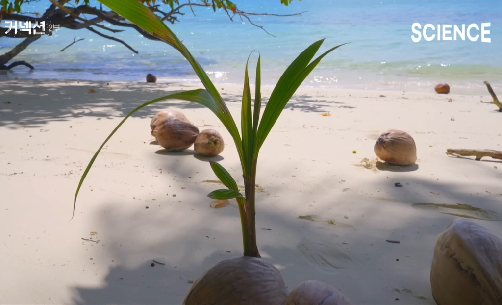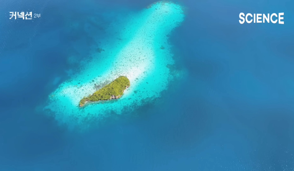 즉 물고기가 섬을 만든다. 그리고 이런 섬에 코코넛 열매가 상륙해 싹을 틔우고 수많은 생명들을 불러들인다.