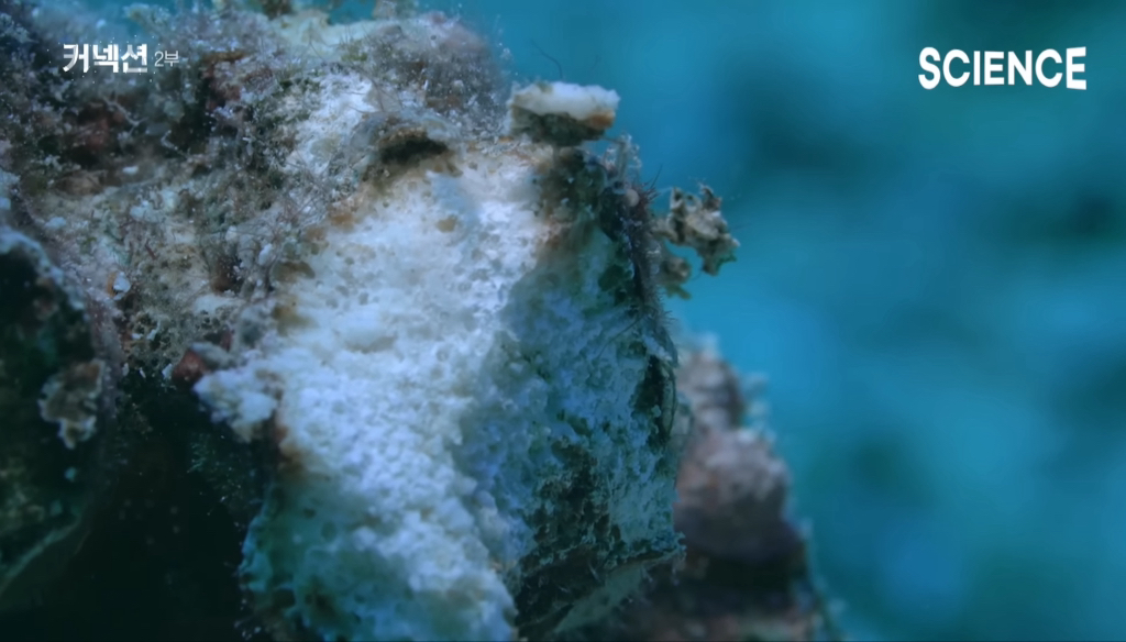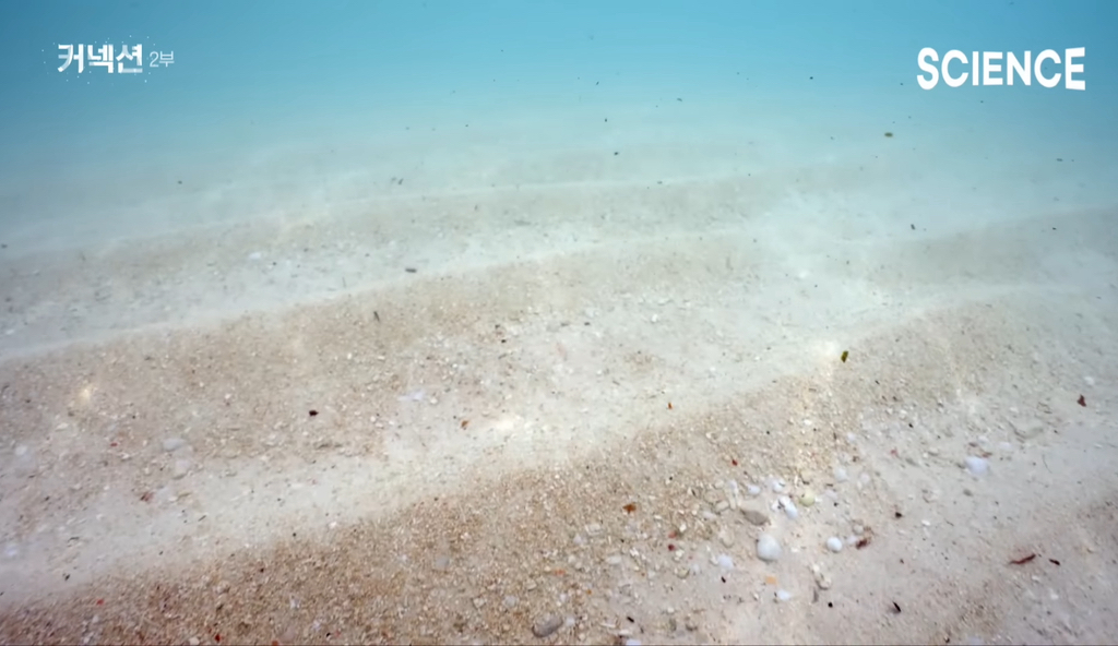 패럿피쉬의 몸을 걸쳐 다시 바다로 나온 산호는 모래알보다도 작은 알갱이가 되고