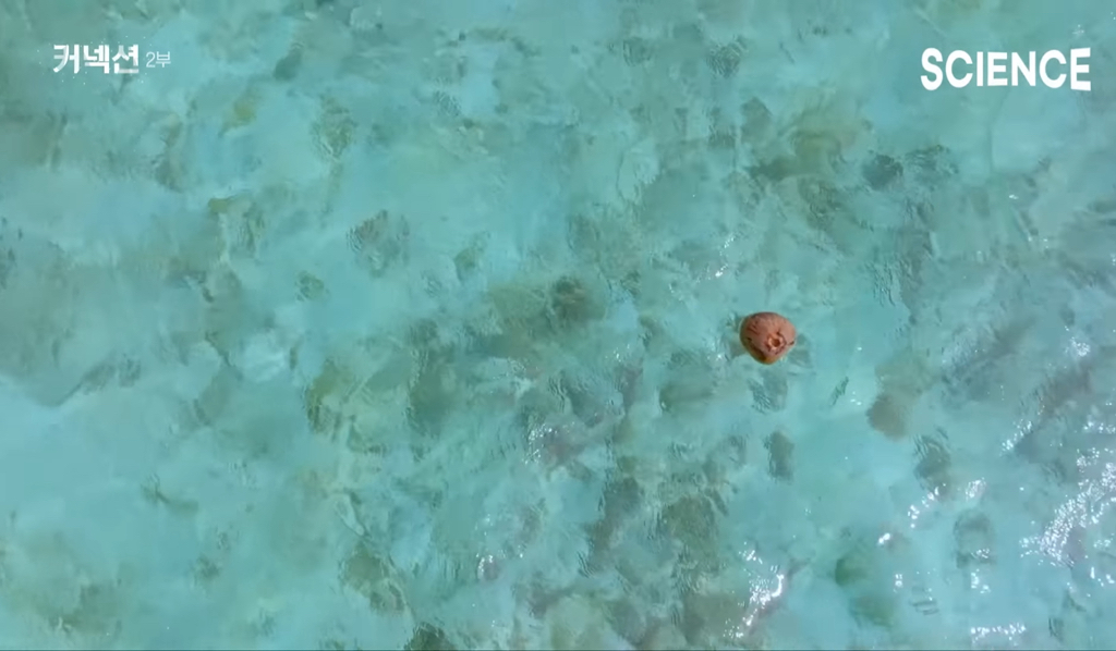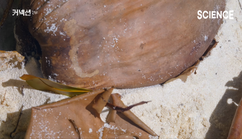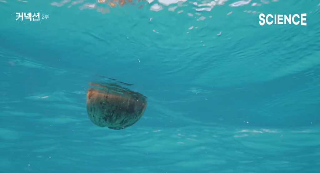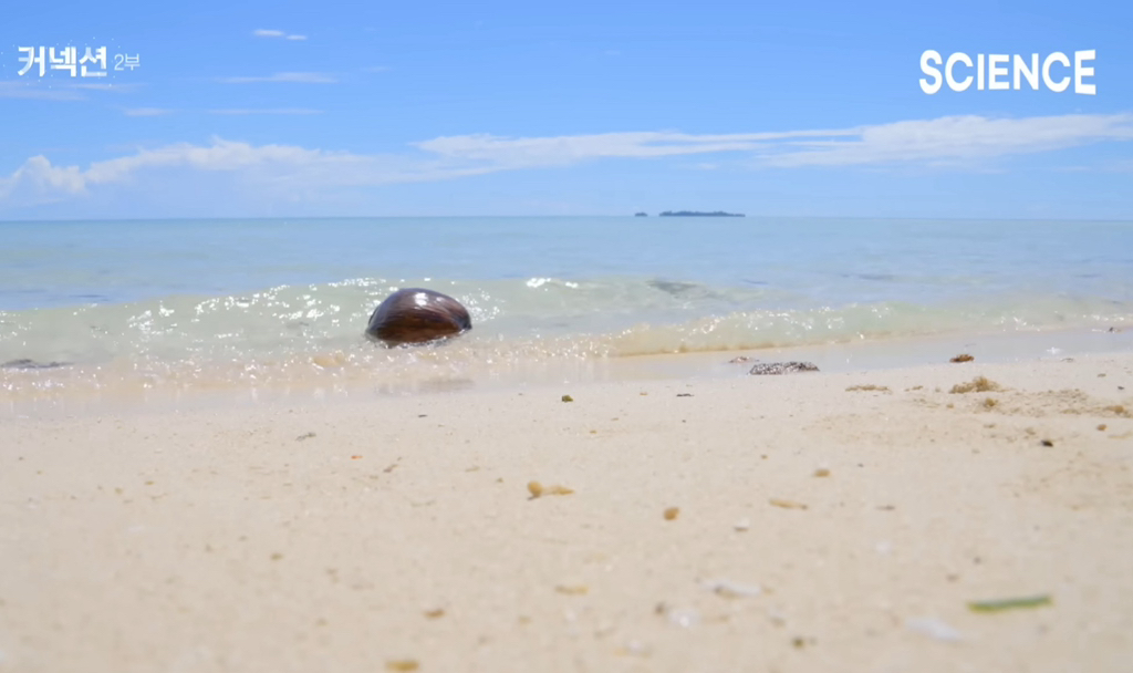 광합성의 시간을 기다리며 계속 항해 중인 코코넛 열매