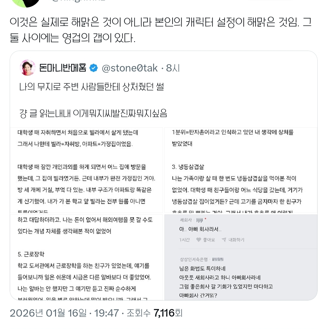 작성자올브리영 작성시간 26.01.19 찐부자가 빌라에서 자취?ㅋㅋ