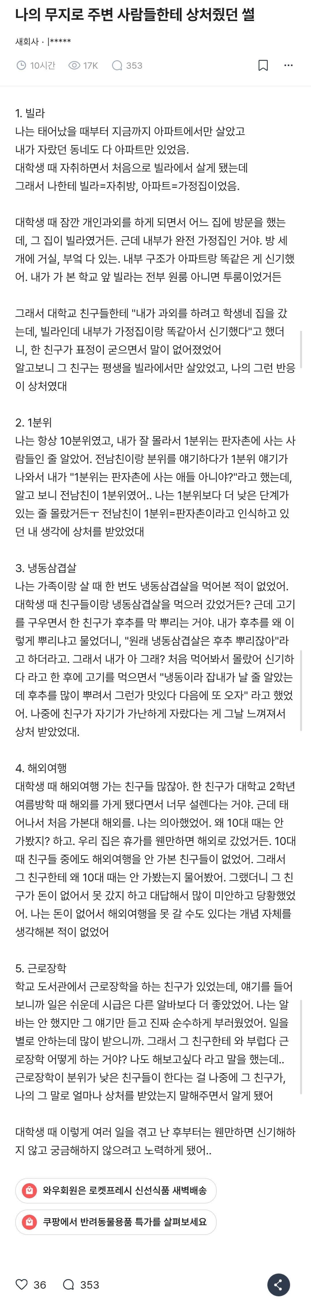 작성자몬딩이 작성시간 26.01.18 회사 들어가는 나이가 되고서도 저런 글을 쓰는구나.. ㅠ 내가 다 수치스러워… ㅠㅠㅠㅠㅠㅠ