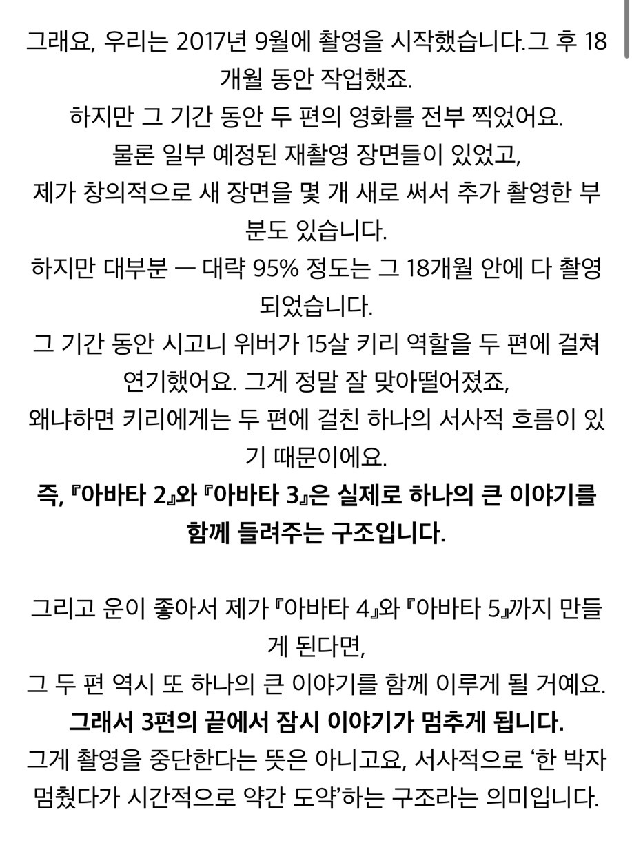 [흥미돋][아바타3] 하나의 이야기의 완결이다 작성자탱그르릉|작성시간26.01.17|조회수7,218 목록 댓글 5 글자크기 작게가 글자크기 크게가 출처: 여성시대 탱그르릉 12,34,5이런 느낌의 3부작 트릴로지로 보면 될듯 다음검색 현재 게시글 추가 기능 열기 북마크 공유하기 신고 센터로 신고 댓글 댓글 5 댓글쓰기 답글쓰기 댓글 리스트 작성자김또리잉 | 작성시간 26.01.17 아하 그런 느낌이더라•• 작성자포포푸푸 | 작성시간 26.01.17 마자 2 3이 하나의 이야기같았어 그래서 비슷하다는 얘기도 많은듯 4 기대된다!!!! 작성자가림서 | 작성시간 26.01.17 키리 목소리 어쩔껀지 진짜 걱정되던데 작성자잘나가서그래 | 작성시간 26.01.17 4,5 빨리 낋여와 작성자Theweeknd | 작성시간 26.01.20 아 그럼 쿼리치가 죽은걸수도 있겠군 댓글 전체보기