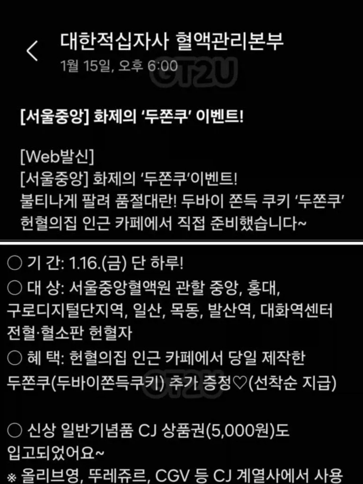 16일 단 하루 헌혈하면 두쫀쿠 주는 이벤트 열었는데