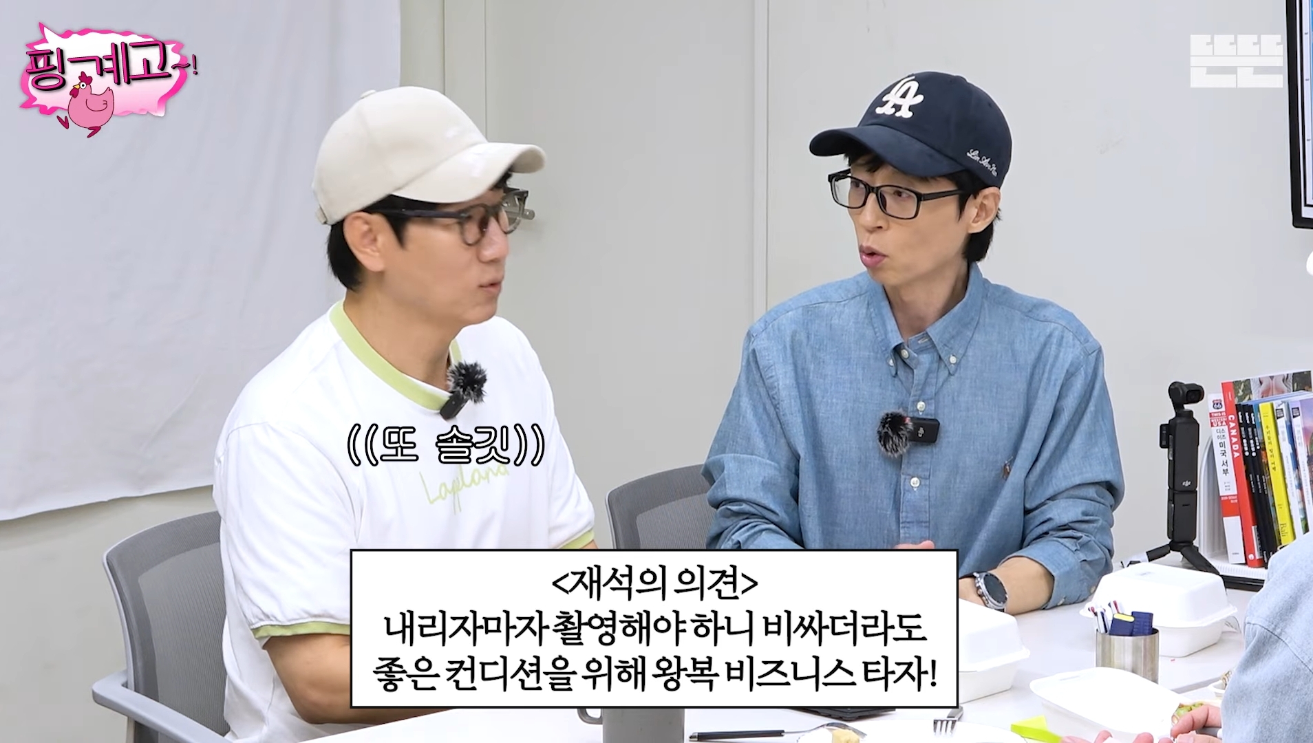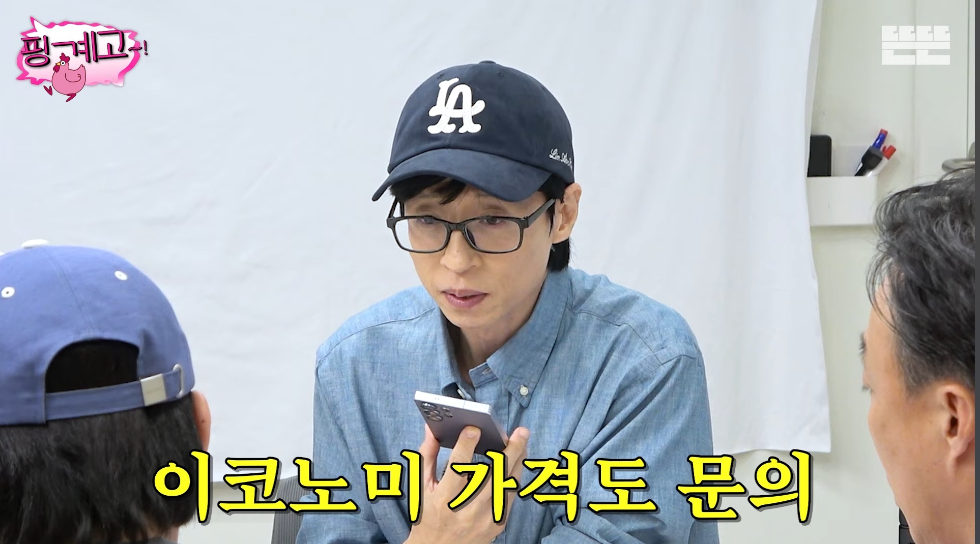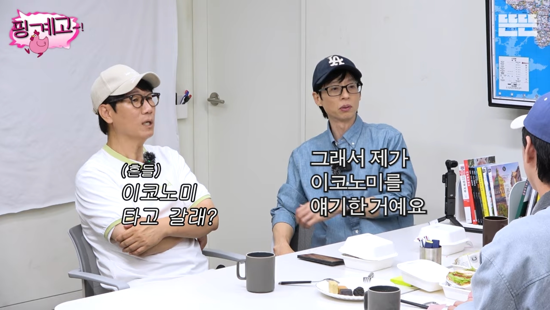 유재석: 그럼 왕복 비즈니스 타자 (형들이 이코노미 못타겠다니까) 당연히 사비로!