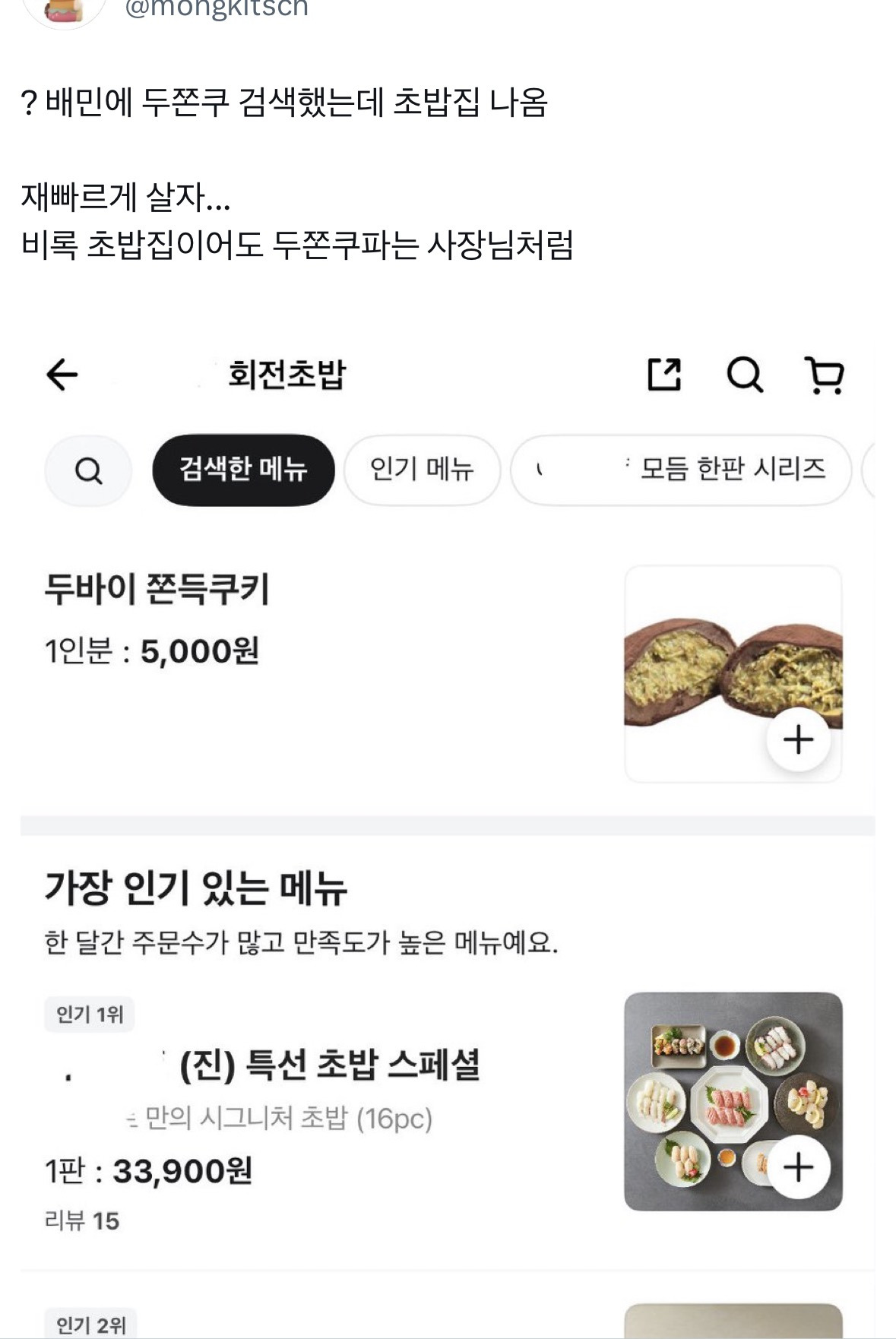 [스크랩] [흥미돋]두쫀쿠 허니버터칩 급 대란이다vs아직 그정도는 아니다 작성자zrfxvw|작성시간26.01.17|조회수22,429 목록 댓글 225 글자크기 작게가 글자크기 크게가 출처: 여성시대 썩은회사빼요즘 제일 핫한 두바이쫀득쿠키전혀 상관없는 업종에서도 두쫀쿠 판매중안성재도 탑승한 두란말이 두쫀쿠 대란품귀 현상 일어나서 먹기 힘든 두쫀쿠허니버터칩 급 대란이다vs그 정도는 아니다 다음검색 스크랩 원문 : *여성시대* 차분한 20대들의 알흠다운 공간 현재 게시글 추가 기능 열기 북마크 공유하기 신고 센터로 신고 댓글 댓글 225 댓글쓰기 답글쓰기 댓글 리스트 작성자커피포리 | 작성시간 26.01.18 허버칩은 걍 보기도 힘들어서 그정도 아닌듯 작성자흐흫흐흐 | 작성시간 26.01.18 두쫀쿠 지금 배달앱키면 오억개잇는데요.. 작성자중중중황태 | 작성시간 26.01.18 두쫀쿠는 당장 사고싶으면 살 수 있잖아 ㅋㅋㅋㅋ 허버칩은 그거조차 불가능했다고! 작성자스피또당첨되게해주세요 | 작성시간 26.01.18 그정돈 아닌긋 작성자초기화해쩌요 | 작성시간 26.01.18 난 안먹어봄.. 달거같아서 먹고 싶지도 않고 ㅠ 댓글 전체보기