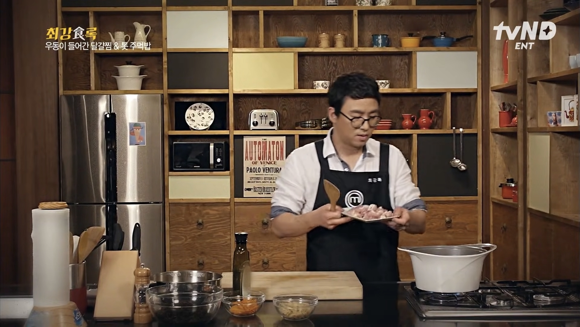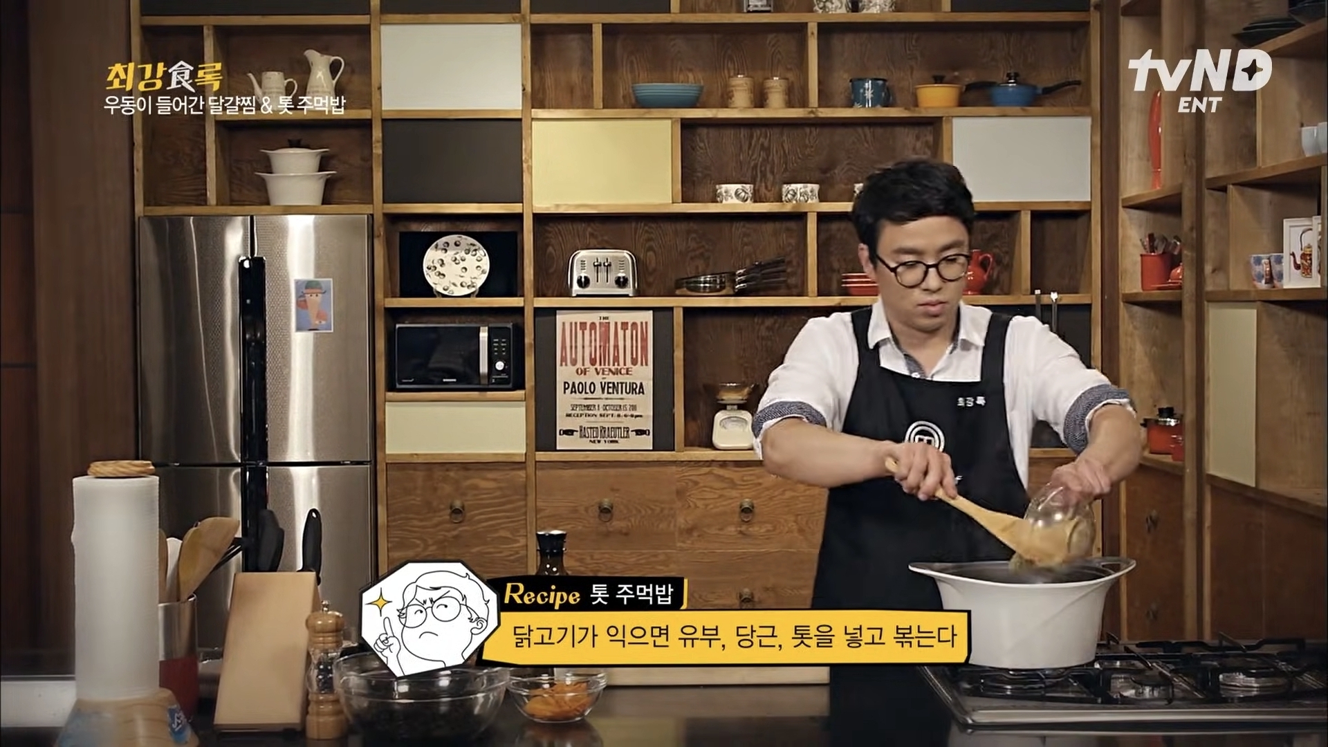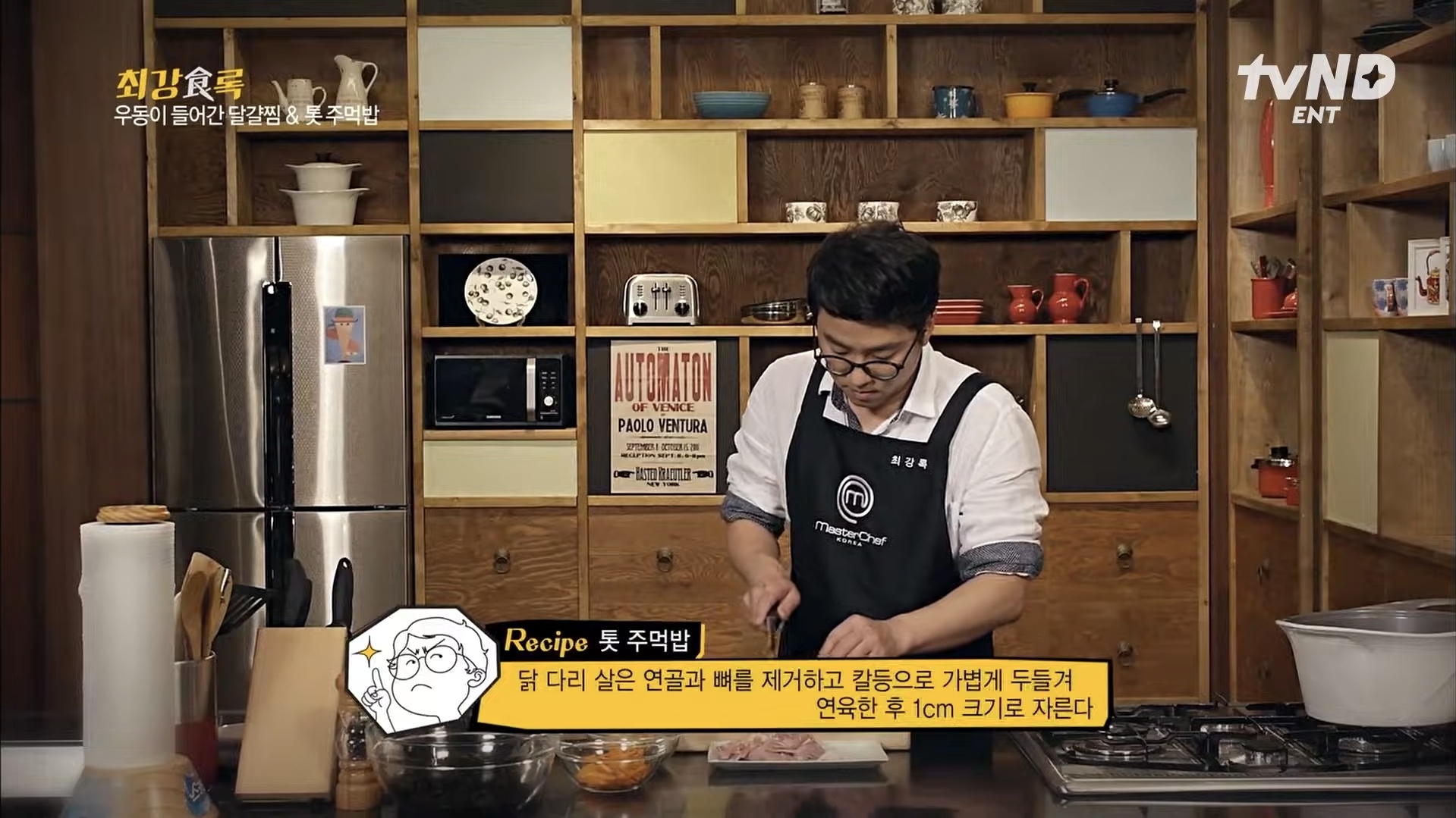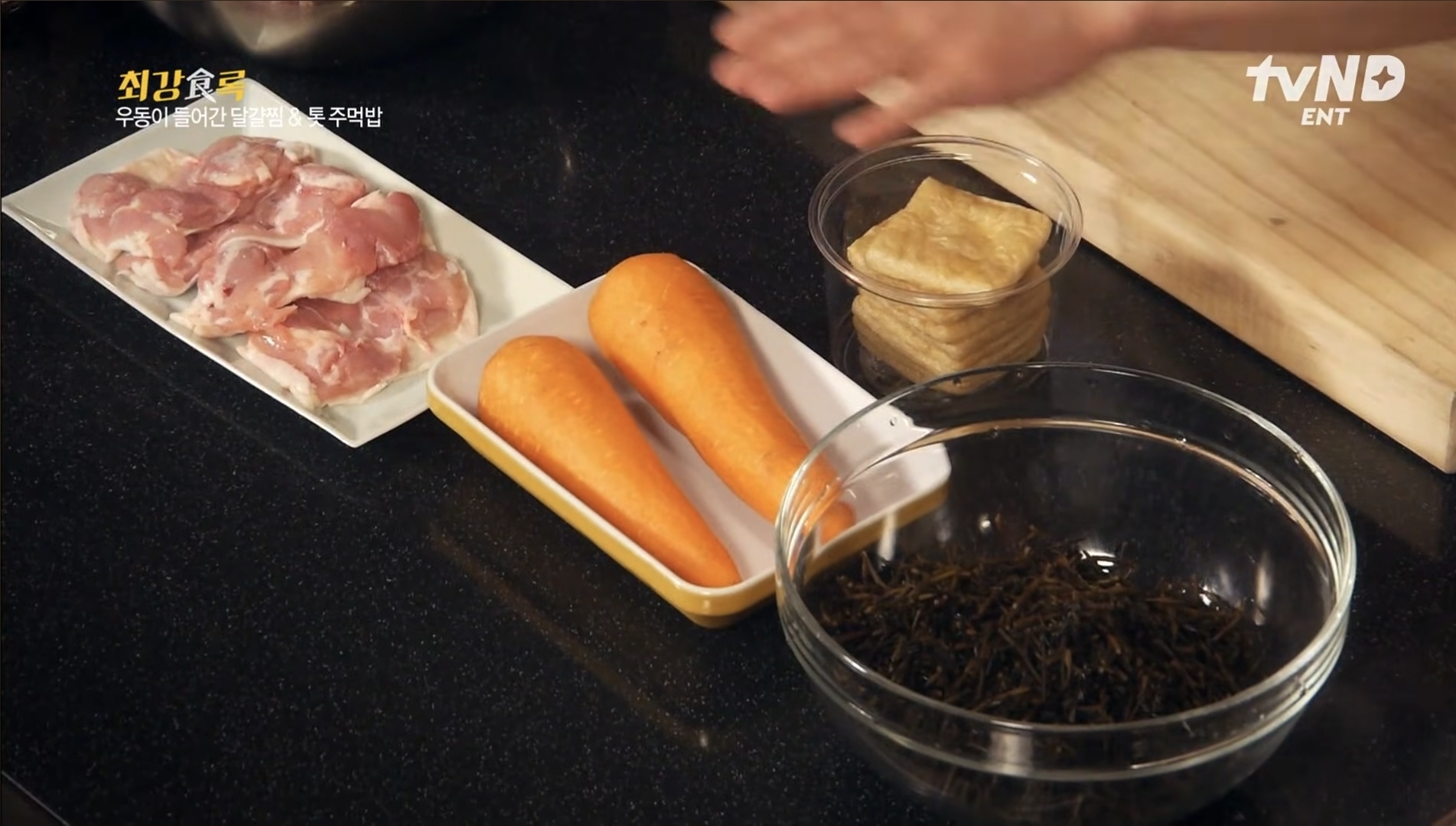 톳만 쓰면 담백한 맛이라 동물성 재료를 쓰겠습니다 닭다리살 정육, 유부, 당근