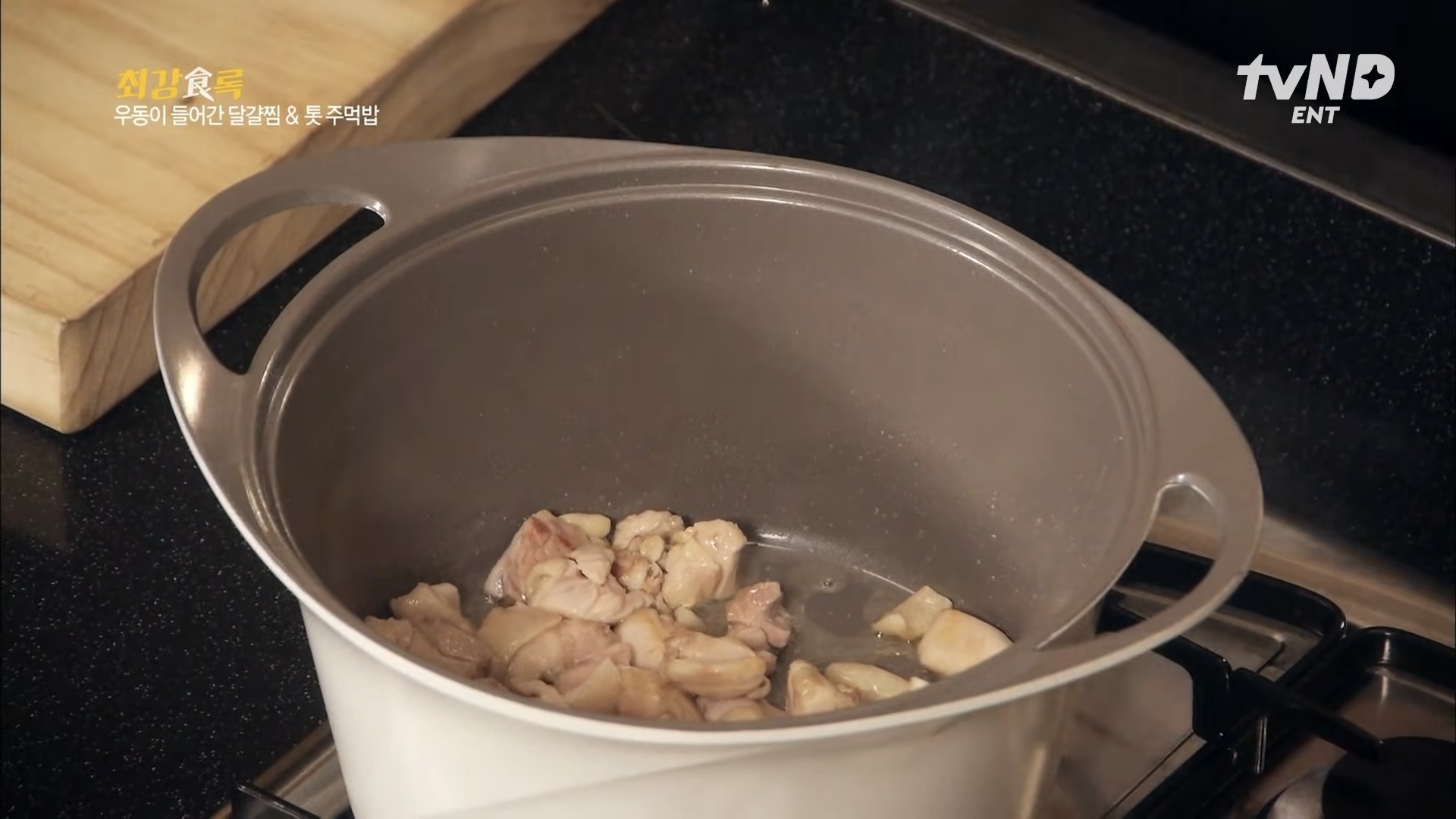 닭다리살이 하얗게 될 때까지 볶습니다