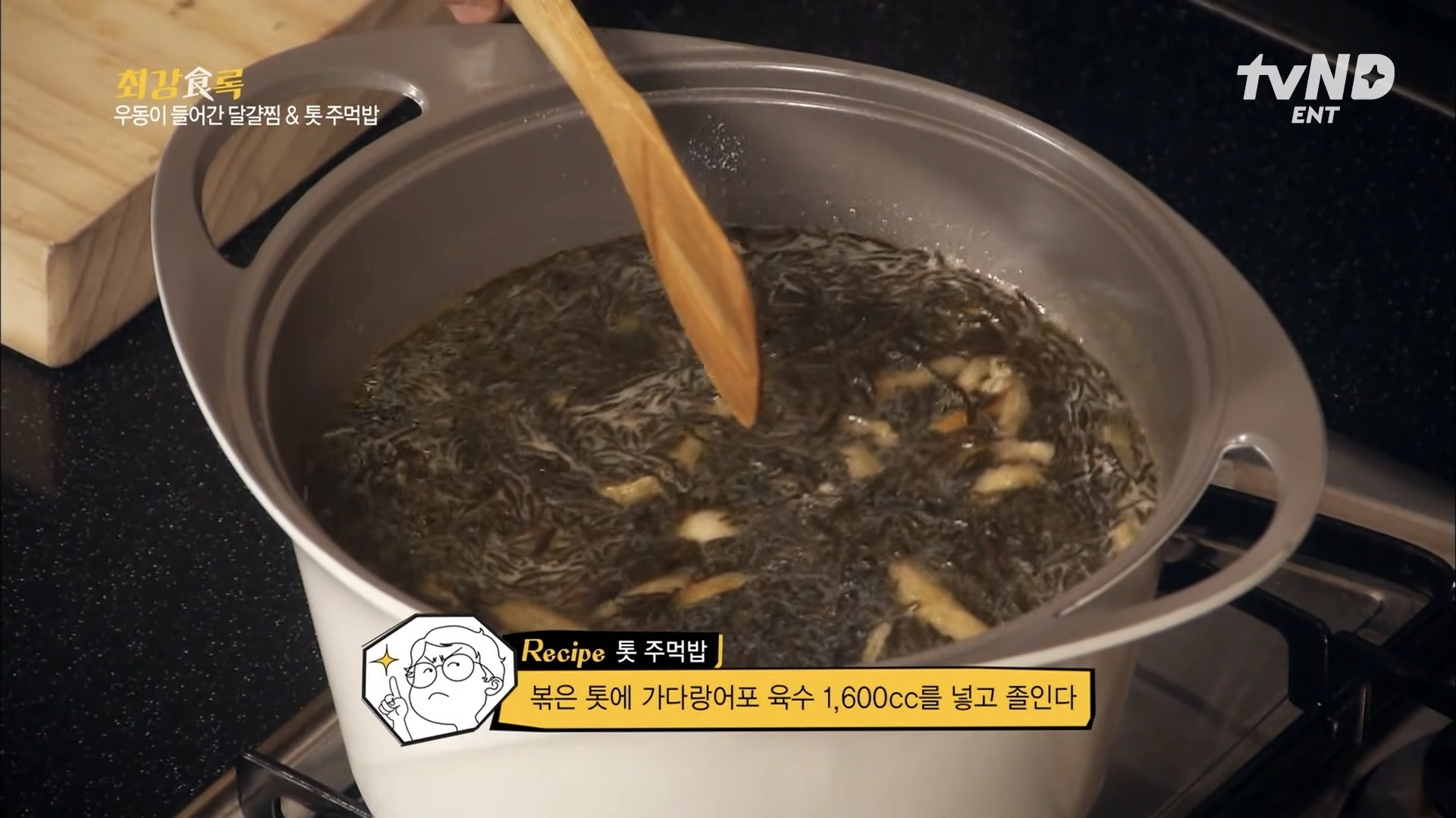 가다랑어포 육수를 1600cc나 넣어 조리는 톳조림