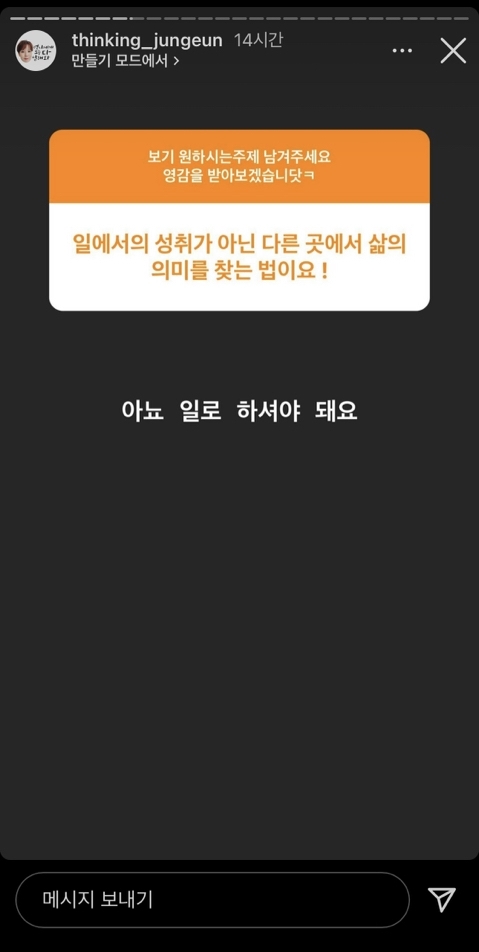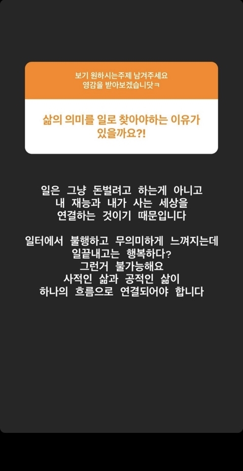 작성자사이사이사이사이 작성시간 26.01.18 나도 하루에 가장많은 시간을 투자하는 ^일^이 불행하면 하루가 불행하다는 생각에 직업도 바꿔봤는데 또 그직업이 나랑 핏하지않은데서 오는 불행이있어서 너무힘듦 일로서 불행하지않은게 진짜 힘든거같아
