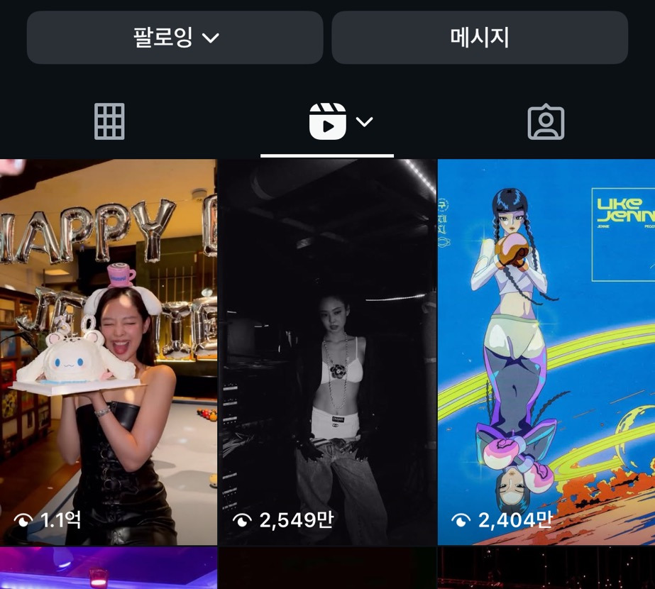 [흥미돋]하루만에 인스타 릴스 영상 조회수 1억 넘었다는 제니 영상 작성자코스타리키|작성시간26.01.17|조회수57,385 목록 댓글 43 글자크기 작게가 글자크기 크게가 출처: 여성시대 코스타리키위 사진 누르면 영상 볼 수 있음릴스 영상 터지고 팔로워도 릴스 올리기전 8882만 팔로워에서 지금은 8915만으로 확 늘음 다음검색 현재 게시글 추가 기능 열기 북마크 공유하기 신고 센터로 신고 댓글 댓글 43 댓글쓰기 답글쓰기 댓글 리스트 작성자가디가니하네 | 작성시간 26.01.18 저 얼굴이 어케 서른이야 개귀엽다 작성자Re-start | 작성시간 26.01.18 존나 핫걸 작성자애고고곡 | 작성시간 26.01.18 소화왤케잘해 작성자아그러시구나! | 작성시간 26.01.18 일단 나도 천번봄 작성자폭주긴희 | 작성시간 26.01.19 제니야 내가 미역국 조기 la갈비 해드려도 돠냐 생일 축하드린다 댓글 전체보기