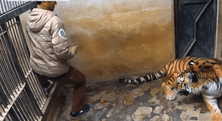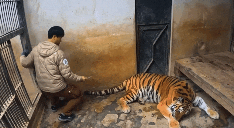 호랑이 발톱 깎으려고 전기톱까지 동원함 ㅎㄷㄷ