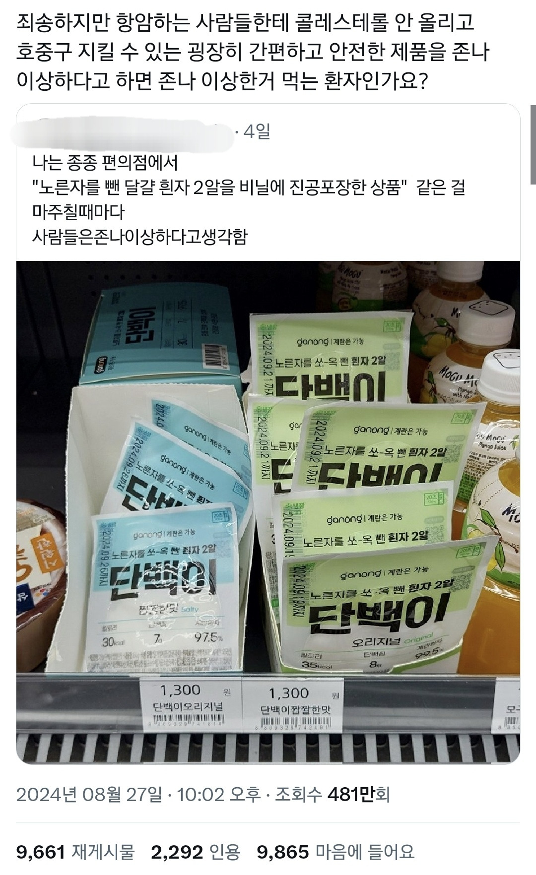 작성자낮말은새가듣고 밥말은라면먹고싶더 작성시간 26.01.18 와 저 흰자만 있는 계란 사야겠다