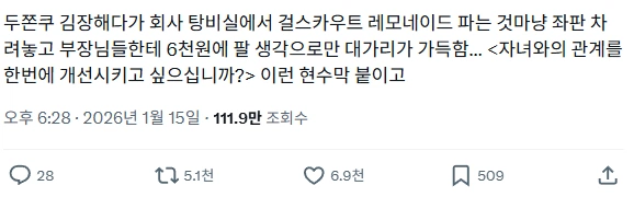 작성자집중맞은 도둑력 작성시간 26.01.18 이미 자녀가 두쫀쿠 김장했다더라