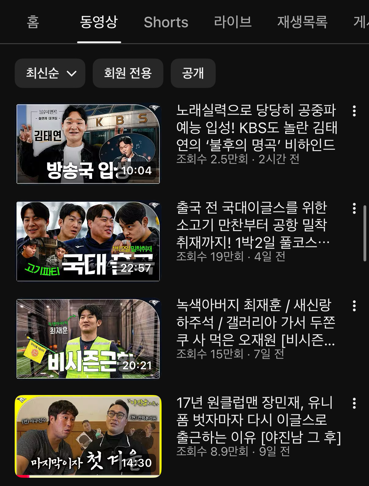 야빠의 10개구단 비시즌 유튜브 점검일지
