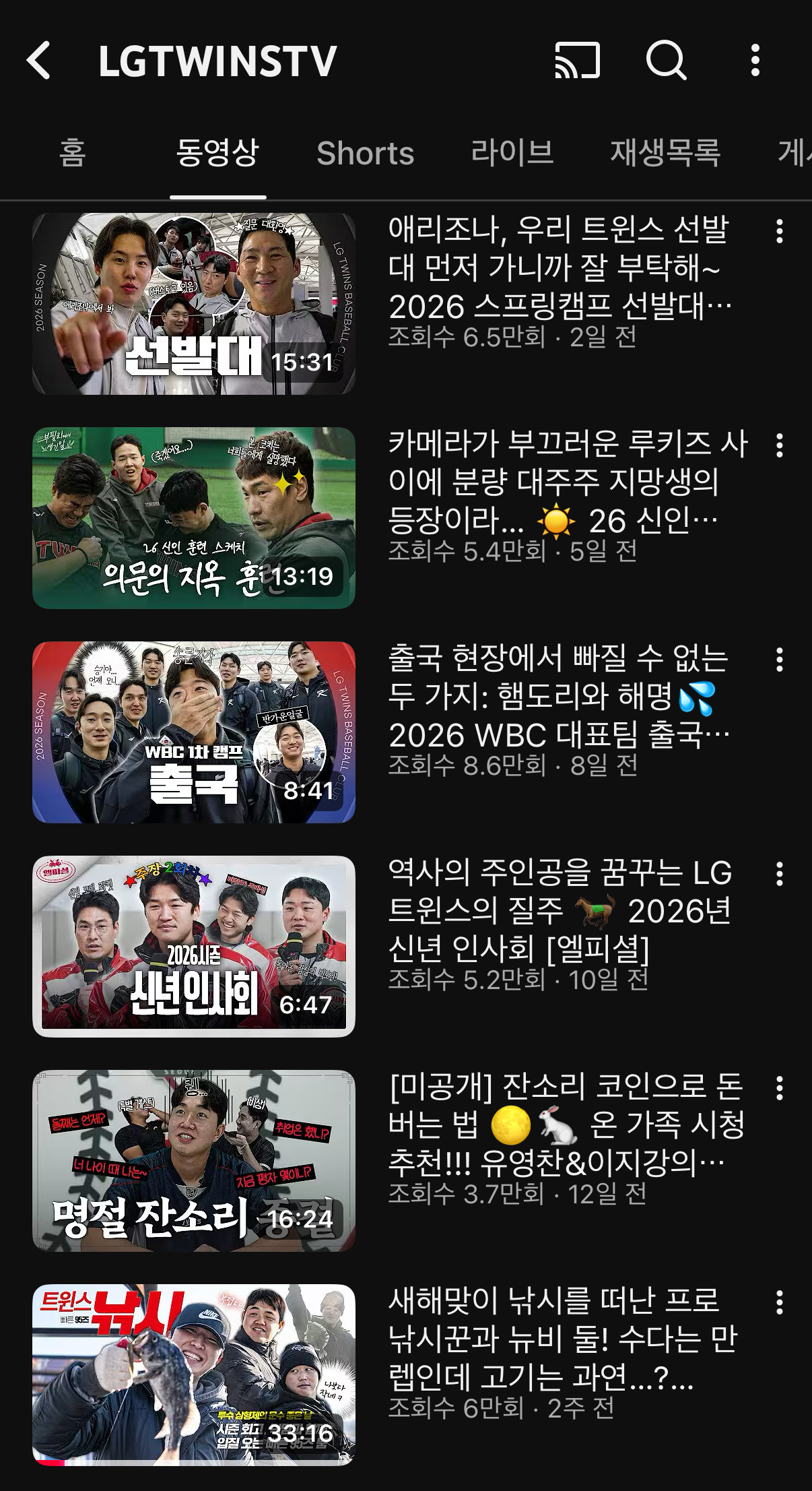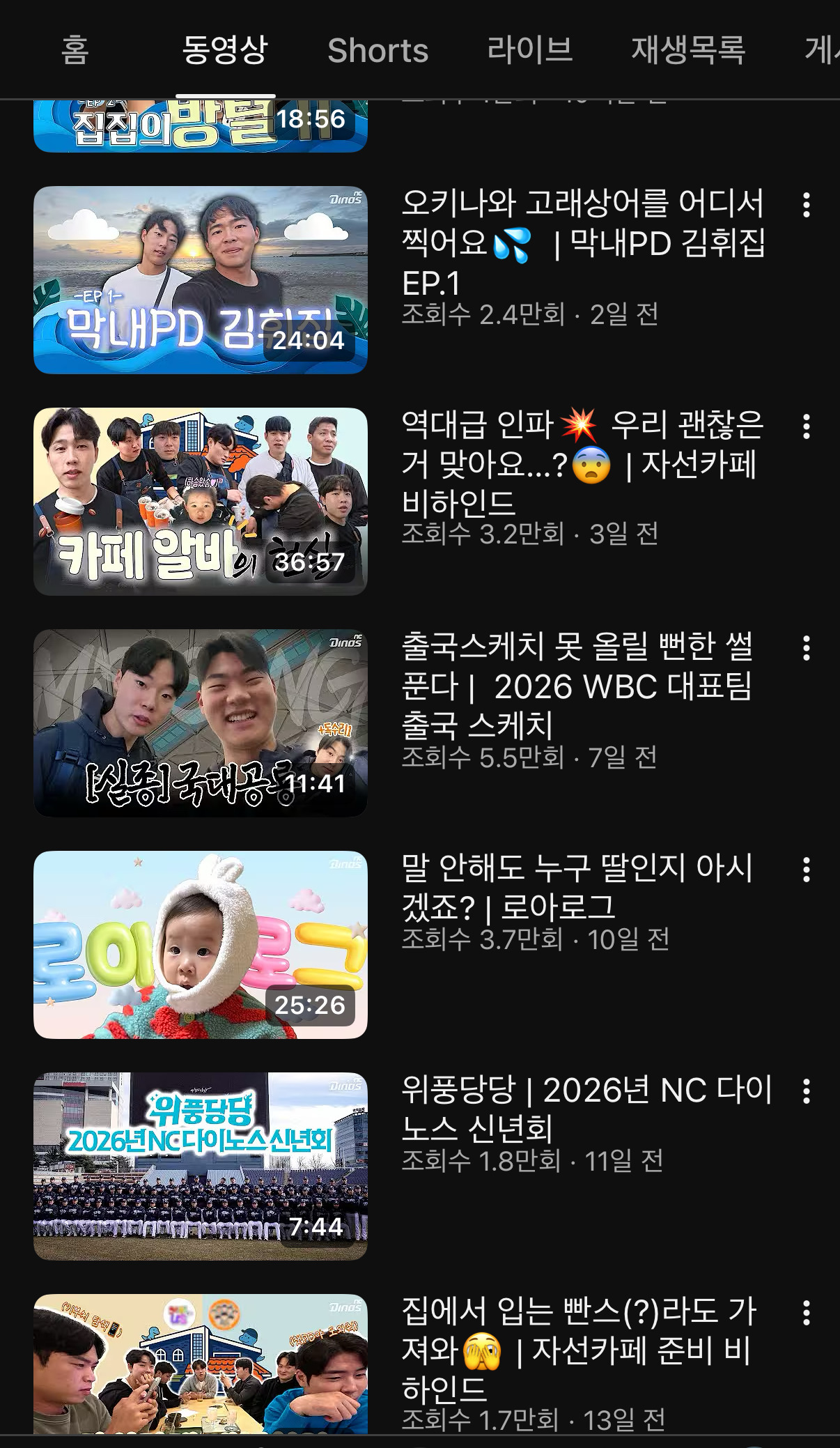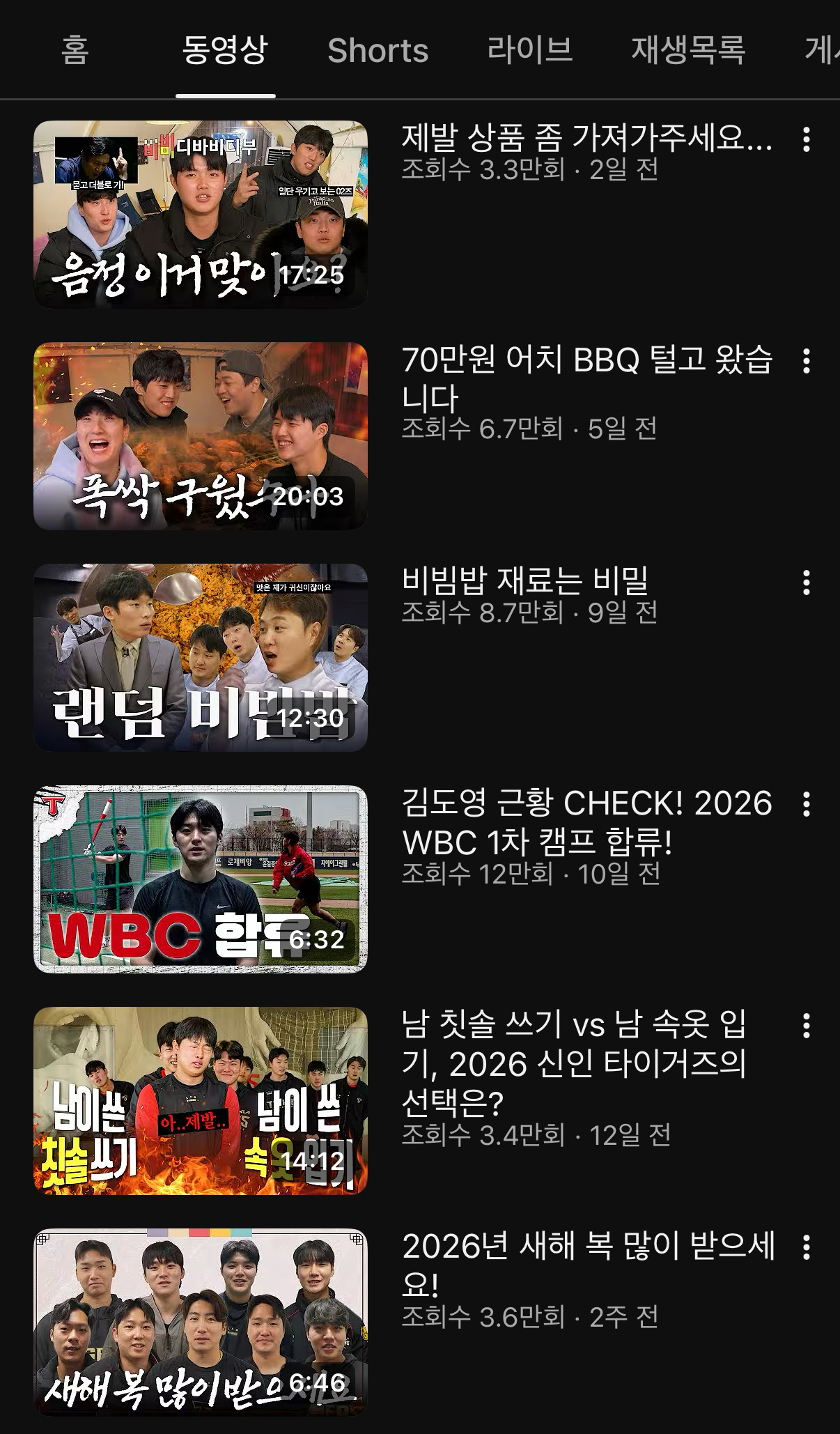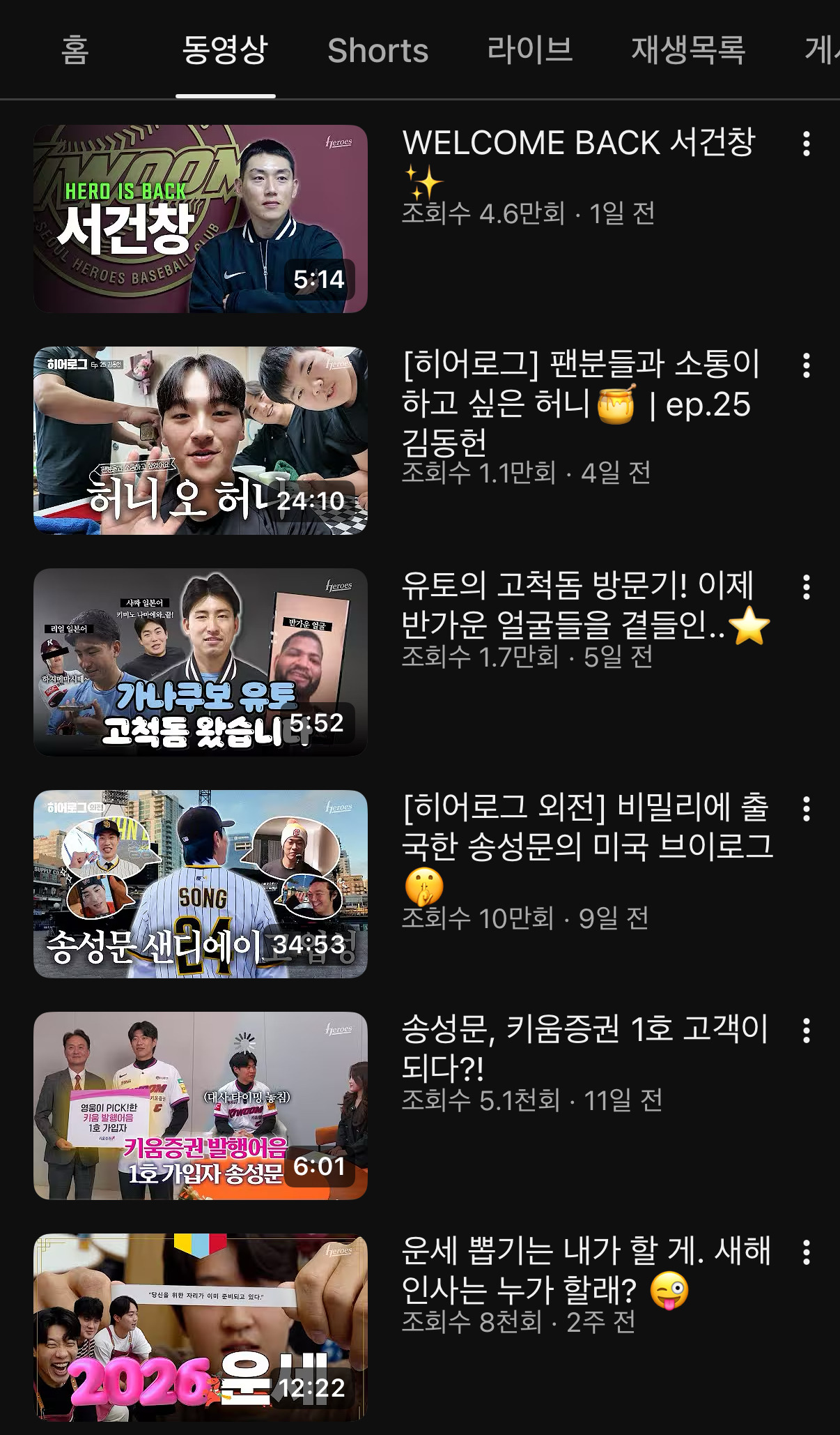 1/1 이후로 올라온 영상 6개