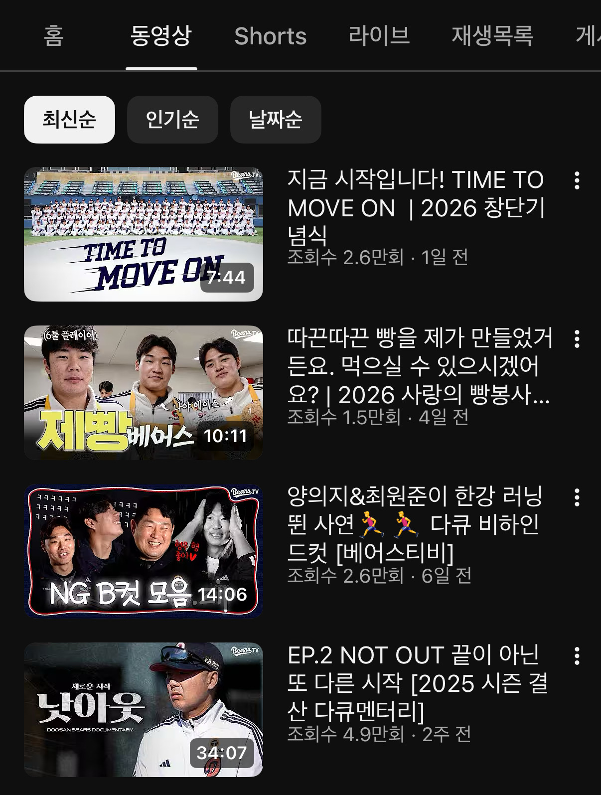 1/1 이후로 올라온 영상 4개