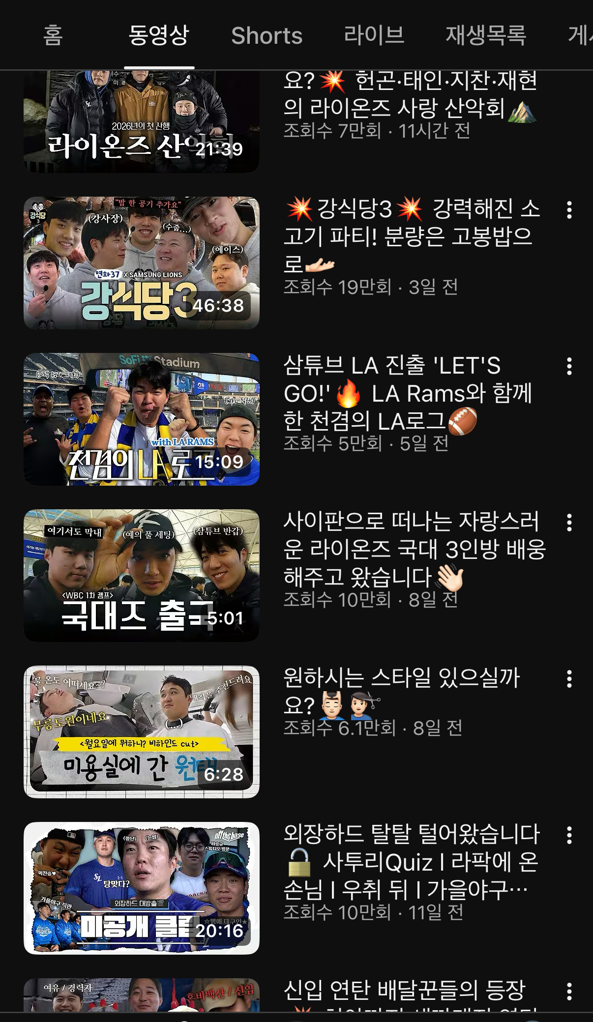 아무래도 시즌 시작하면 우리팀 쳐맞은 덕아웃 영상들이 썸네일에 박혀서 올라오니까 함부로 못 보게 되거든요^^,,