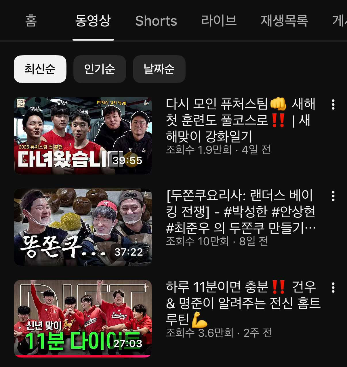 1/1 이후로 올라온 영상 3개
