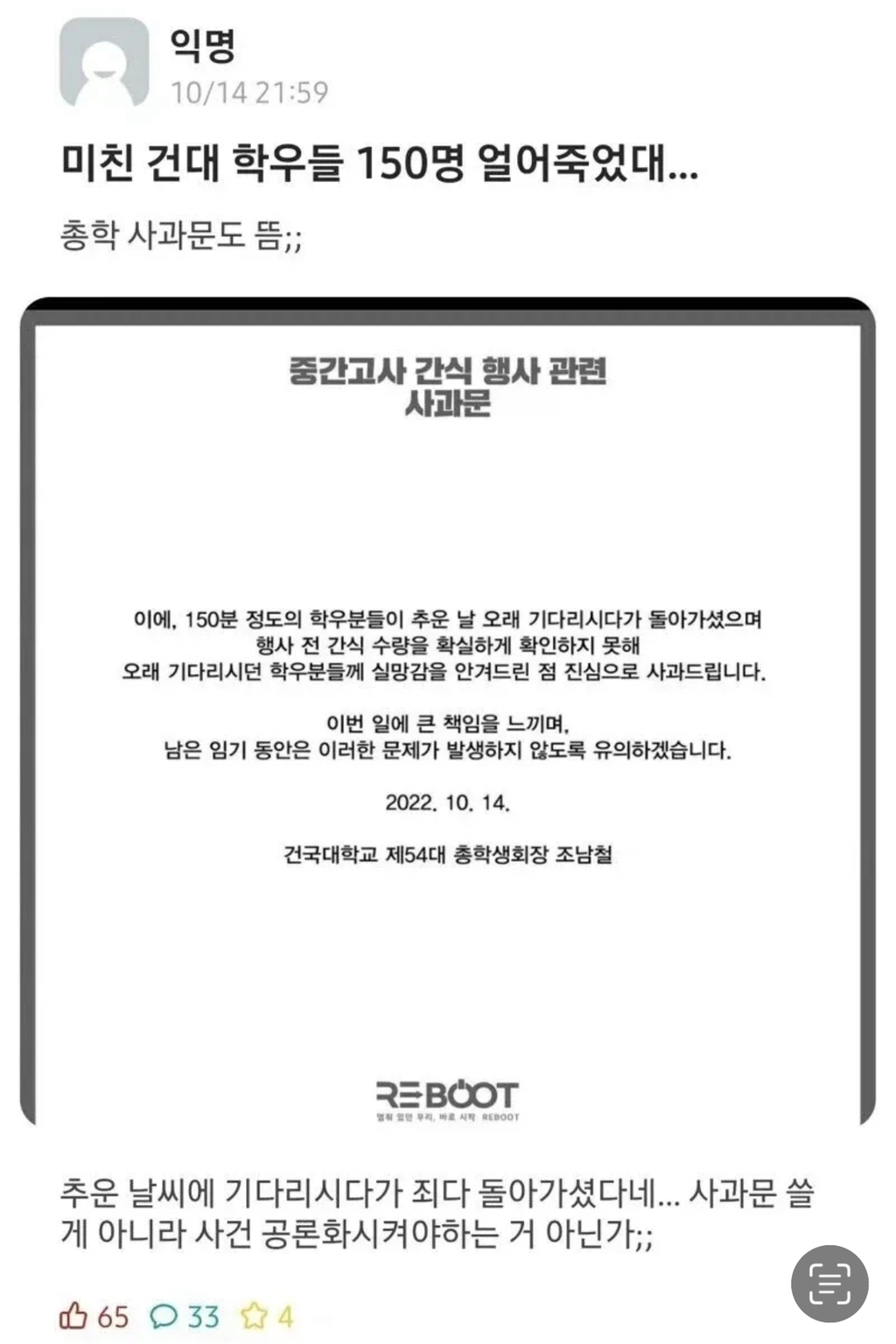 [스크랩] [흥미돋]헐 건대학생 150명 얼어죽었대 작성자말차빼빼로|작성시간26.01.18|조회수163,903 목록 댓글 45 글자크기 작게가 글자크기 크게가 무슨일이냐 진짜 다음검색 스크랩 원문 : *여성시대* 차분한 20대들의 알흠다운 공간 현재 게시글 추가 기능 열기 북마크 공유하기 신고 센터로 신고 댓글 댓글 45 댓글쓰기 답글쓰기 댓글 리스트 작성자매국노친일파극혐 | 작성시간 26.01.18 깜놀했네되돌아갔다 빈손으로 돌아갔다고 써줘ㅋㅋㅋㅋ 작성자공주가뭘하든남이사 | 작성시간 26.01.18 아 깜놀 작성자경국지색 어쩌고 | 작성시간 26.01.18 ㅅㅂ ㅋㅋㅋㅋㅋㅋ 작성자피노누아 | 작성시간 26.01.18 깜짝앜ㅋㅋㅋㅋㅋㅋ 작성자제로떡볶이 | 작성시간 26.01.18 뺑긄학살사건 댓글 전체보기