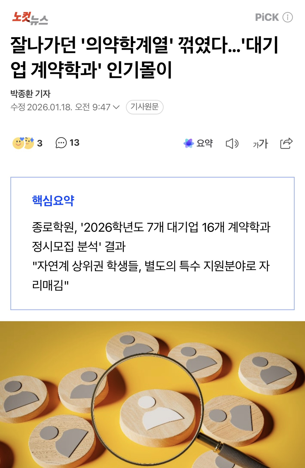 삼성전자와 SK하이닉스 등 대기업 계약학과 지원자가 40% 가까이 늘며, 의약학계열 지원자가 25%나 줄어든 것과는 대조적인 모습을 보였다.