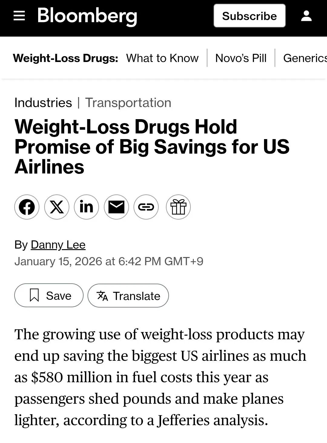 미국에서 비만치료제가 보급되자 미국 항공업계가 반사이익을 얻고 있다는 신기한 결과가 나옴