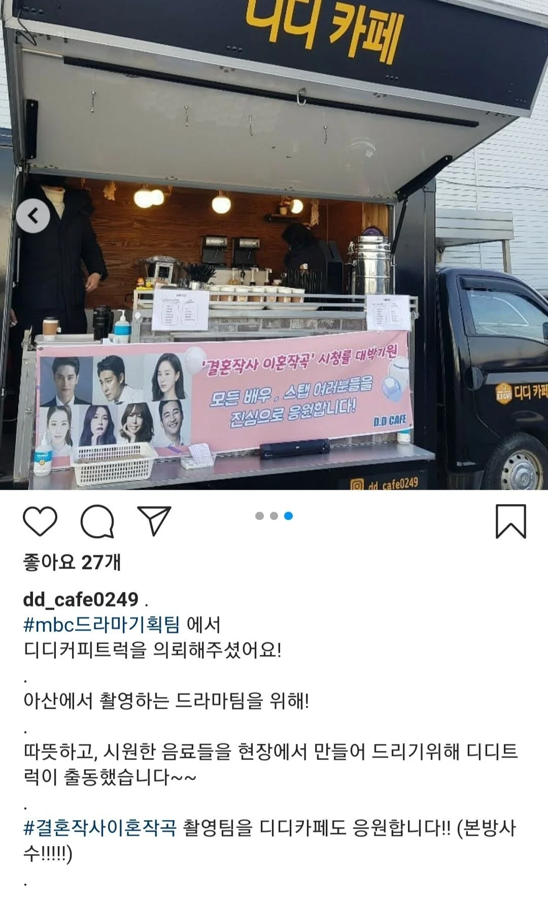 2. 타 방송국 드라마 촬영장에 커피차를 보낸 것
