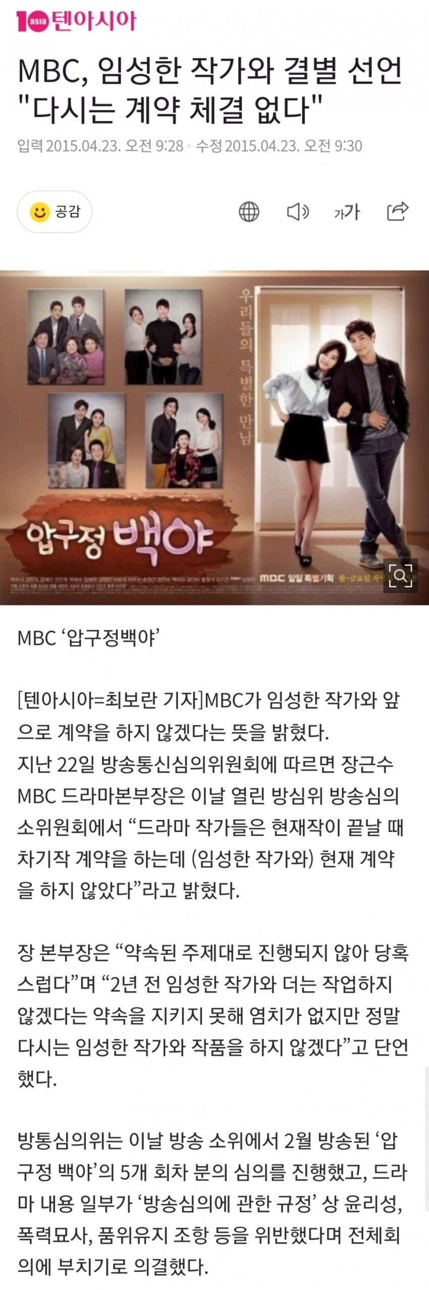 2015년, 임성한 작가는 MBC에서