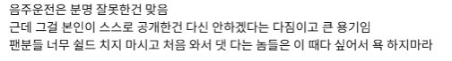 작성자가습기에 물 채워 작성시간 26.01.20 음주운전 10년 간 세 번 걸려본 사람이 주변에 없어서 저렇게 유한가보네