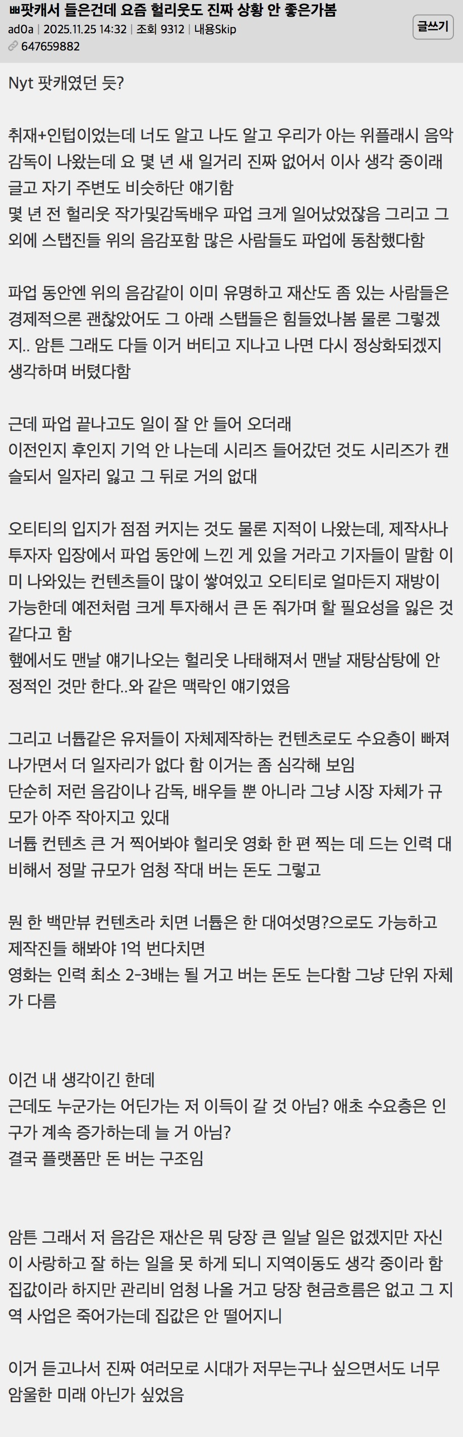 작성시간 26.01.19 오히려 개인 제작자들이 플랫폼을 통해 더 다채로운 작은 작품들을 낼 수 있을지도..?