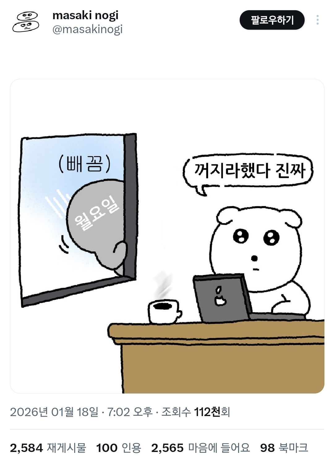 [흥미돋]지금 이 시각 모든 사람들에게 찾아온 특별한 손님.twt 작성자스피또띠아|작성시간26.01.18|조회수22,032 목록 댓글 18 글자크기 작게가 글자크기 크게가 출처: https://x.com/i/status/2012828050430562521 여성시대 스피또띠아🌈💕다들 귀여운 월요일을 환영해주세요💖💫 다음검색 현재 게시글 추가 기능 열기 북마크 공유하기 신고 센터로 신고 댓글 댓글 18 댓글쓰기 답글쓰기 댓글 리스트 작성자두산베어스 V7 | 작성시간 26.01.18 가라고ㅅㅂ 작성자이제드라우닝에빠짐 | 작성시간 26.01.18 귀엽네요^^ 물론 전 내일 출근 안합니다^^ 작성자ISF:P | 작성시간 26.01.19 아 꺼지라고ㅠ 작성자삼성정품 | 작성시간 26.01.19 ㅅㅂ 작성자2026년 로또 1등 당첨자 | 작성시간 26.01.19 낼 병가 ㅎ 댓글 전체보기