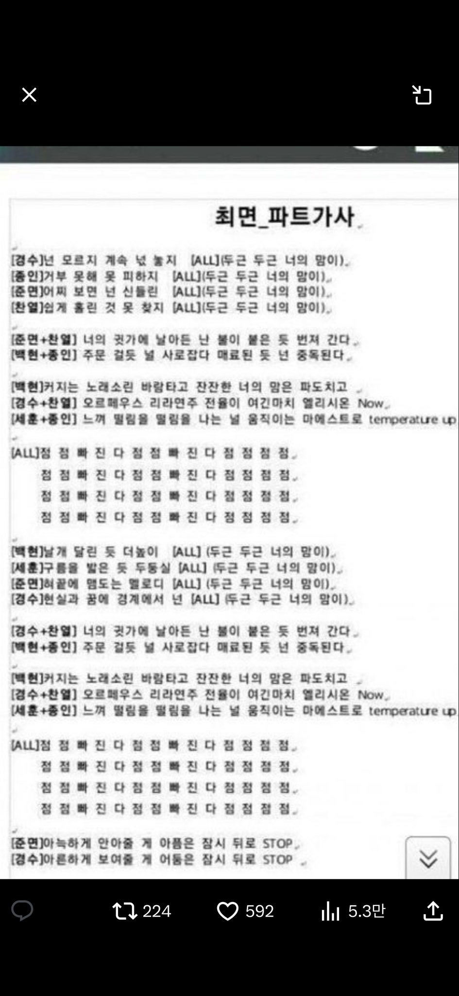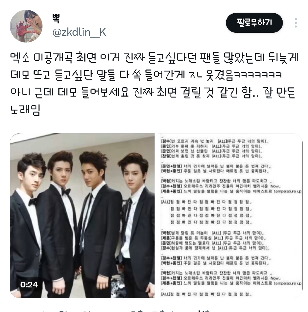 점점 빠진다 웅앵 한 소절 불렀는데 데모곡 음이랑 똑같음