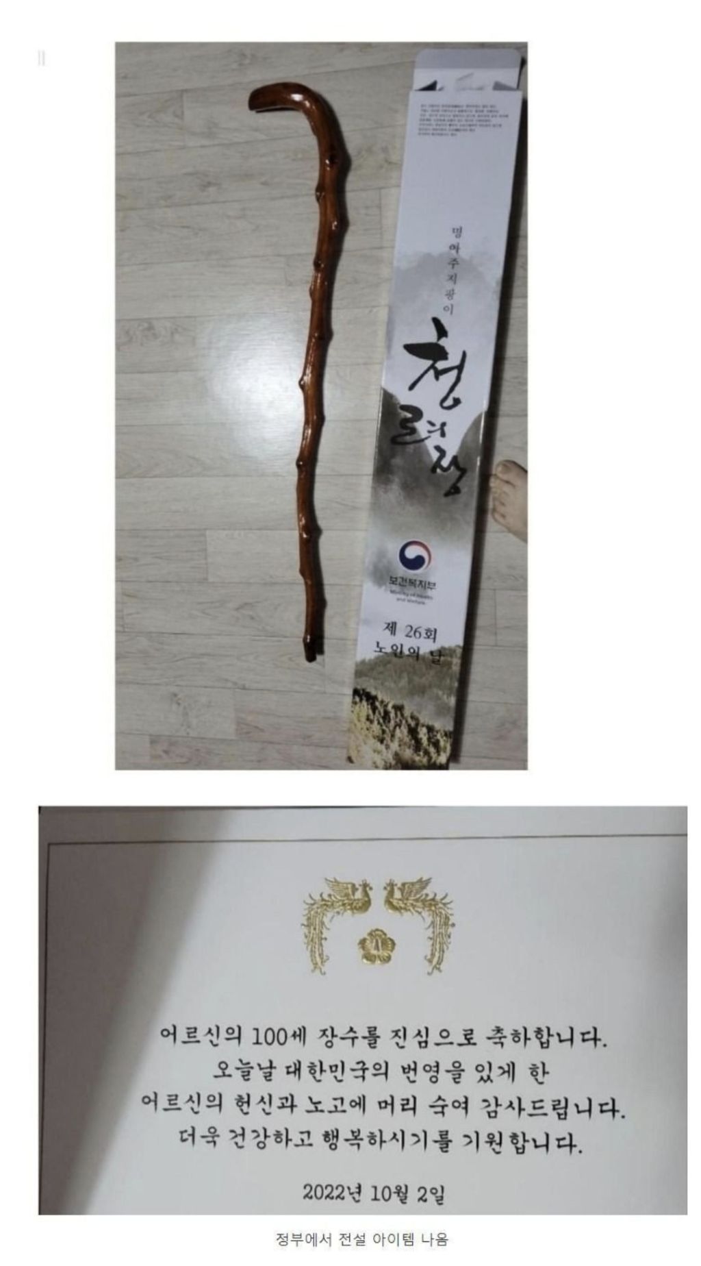 나 50까지만 살 거니까 지팡이 반 짤라서 보내걸아