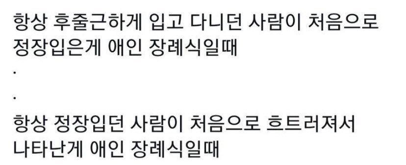 처음으로 어두운 표정으로 격식 있게 차려 입고 온 곳이 애인 장례식일 때
