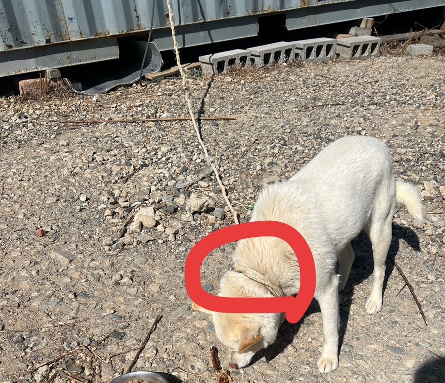 목줄도 밧줄로 꽁꽁 묶여져 있었어요