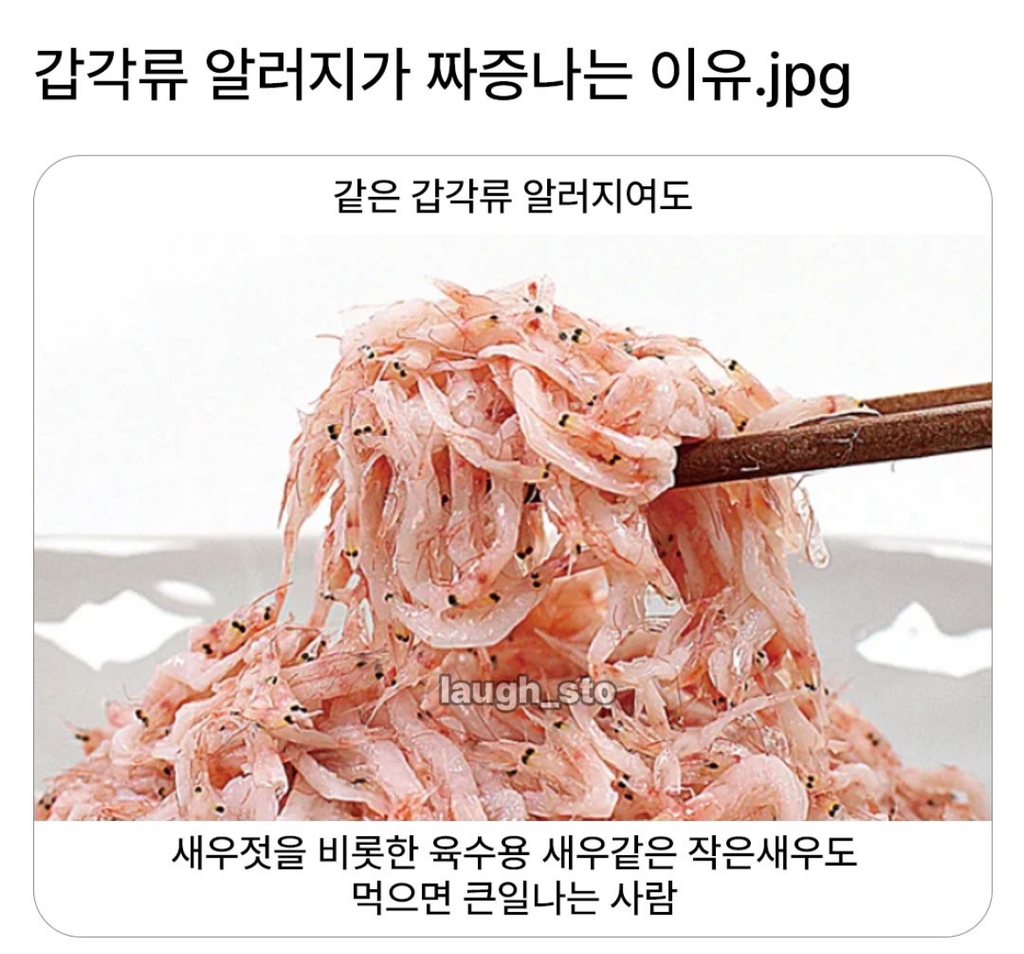 작성자오늘도배고픈여시 작성시간 26.01.20 내 친구는 신선한 새우(?)는 알러지 나고 냉동새우는 괜찮더라
