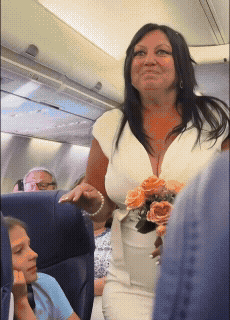 기내 통로를 따라 한 여성이 행진을 시작하는 모습이 담겼다.