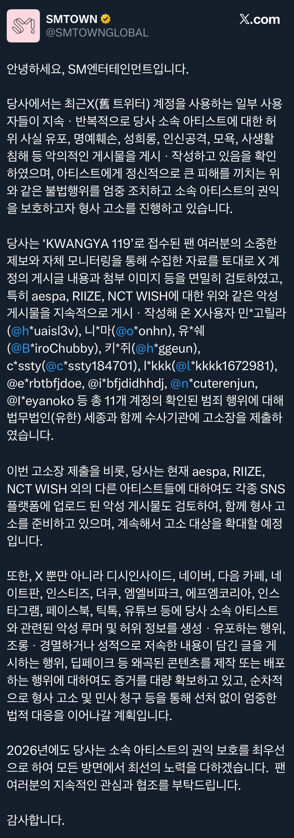 작성자빵떡면 작성시간 26.01.21 민으로 시작하는 계정은 팬 아닌 나도 몇번 봄