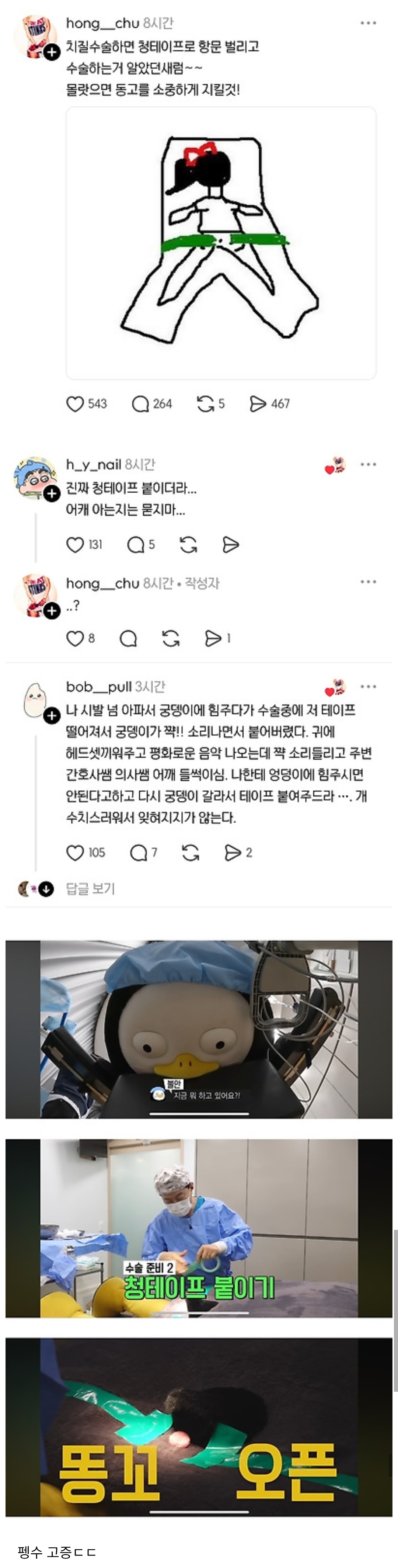 [스크랩] [흥미돋]치질수술할때 청테이프로 항문 벌리는거 알았던 사람? 작성자올해|작성시간26.01.20|조회수13,529 목록 댓글 20 글자크기 작게가 글자크기 크게가 엽기 혹은 진실(세상 모든 즐거움이 모이는곳)출처 : 다음검색 스크랩 원문 : 엽기 혹은 진실 (세상 모든 즐거움이 모이는 곳) 현재 게시글 추가 기능 열기 북마크 공유하기 신고 센터로 신고 댓글 댓글 20 댓글쓰기 답글쓰기 댓글 리스트 작성자에그에그타르트 | 작성시간 26.01.21 그.. 어차피 치과처럼 다 가리고 붙이는거라 생각보다 수치스럽진않더라.. 고 ㅋ: 작성자낮잠자는헴 | 작성시간 26.01.21 아 ㅈㄴ 수치스러워 수면마취 해줘요 작성자화이트닝추미애 | 작성시간 26.01.21 제발 수면마취해줘요 이거보고 살면서 절대 걸리면 안되는병 치질 치루등임.. 작성자미당첨입니다 | 작성시간 26.01.21 기절시켜줘요..제발 작성자찹쌀뿌꿈이 | 작성시간 26.01.21 뗄때 ㅈㄴ게 아픔 미쳤어 수치심과 고통이 한번에 댓글 전체보기
