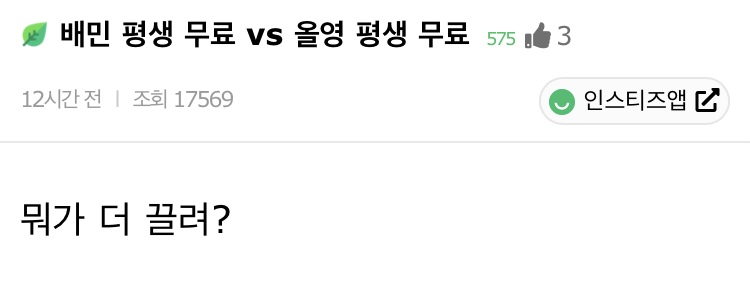[스크랩] [흥미돋]배민 평생 무료 vs 올영 평생 무료 작성자올해|작성시간26.01.21|조회수38,931 목록 댓글 420 글자크기 작게가 글자크기 크게가 출처 인스티즈 다음검색 스크랩 원문 : 樂soccer 현재 게시글 추가 기능 열기 북마크 공유하기 신고 센터로 신고 댓글 댓글 420 댓글쓰기 답글쓰기 댓글 리스트 작성자긍정몬 | 작성시간 26.01.22 올영 작성자체지소 | 작성시간 26.01.22 닥1 작성자행복한고양이세상 | 작성시간 26.01.22 배민이여 작성자밤밤부 | 작성시간 26.01.22 돈은 배민에 훨씬많이 쓰는데 1고르면 ㅈㄴ 살찔것같아서 2고를래ㅠ 작성자세상의희망 | 작성시간 26.01.24 올영 올리브영몰만 가도 진짜 이것저것 다파는데.. 먹을거며 가구 기기 잡화다있음.. 제노바 스피커도 삼 댓글 전체보기