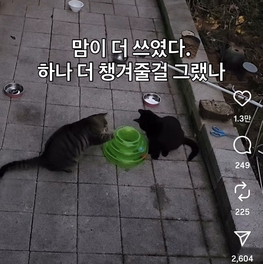 작성시간 26.01.21 ㅠㅠㅠㅠㅠㅠㅠ마음아파 아..진짜 돈 많으면 길고양이들 다 먹여살리고싶어
