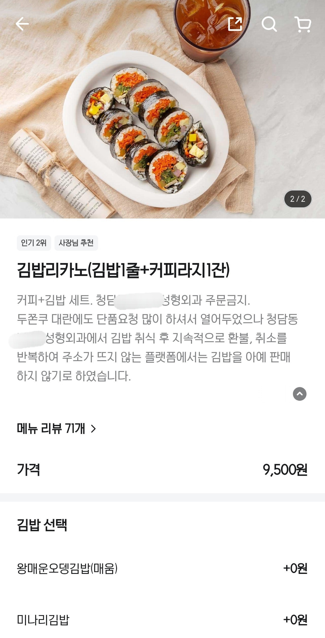 이렇게 써놨는데도 또 주문하고 환불해서 김밥집에서 쿠팡이츠 닫아놓음