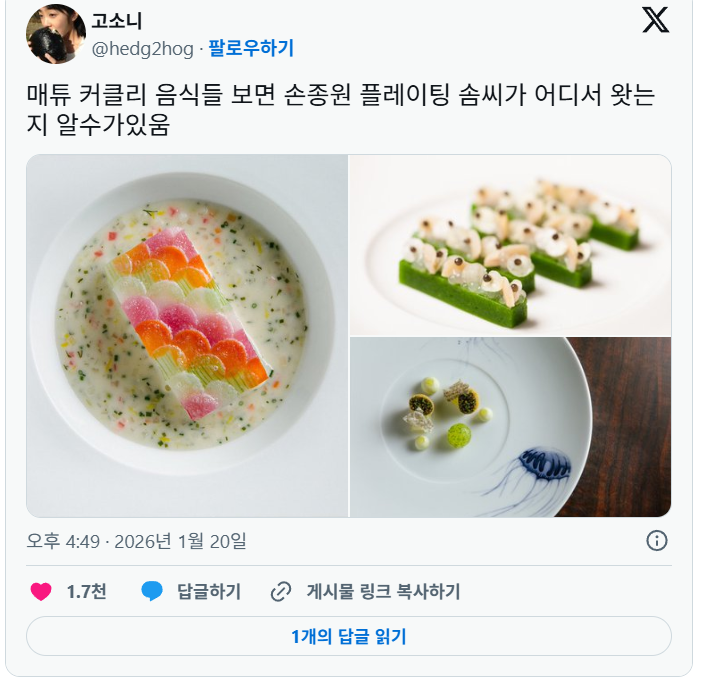 손종원 플레이팅은 이런 느낌임