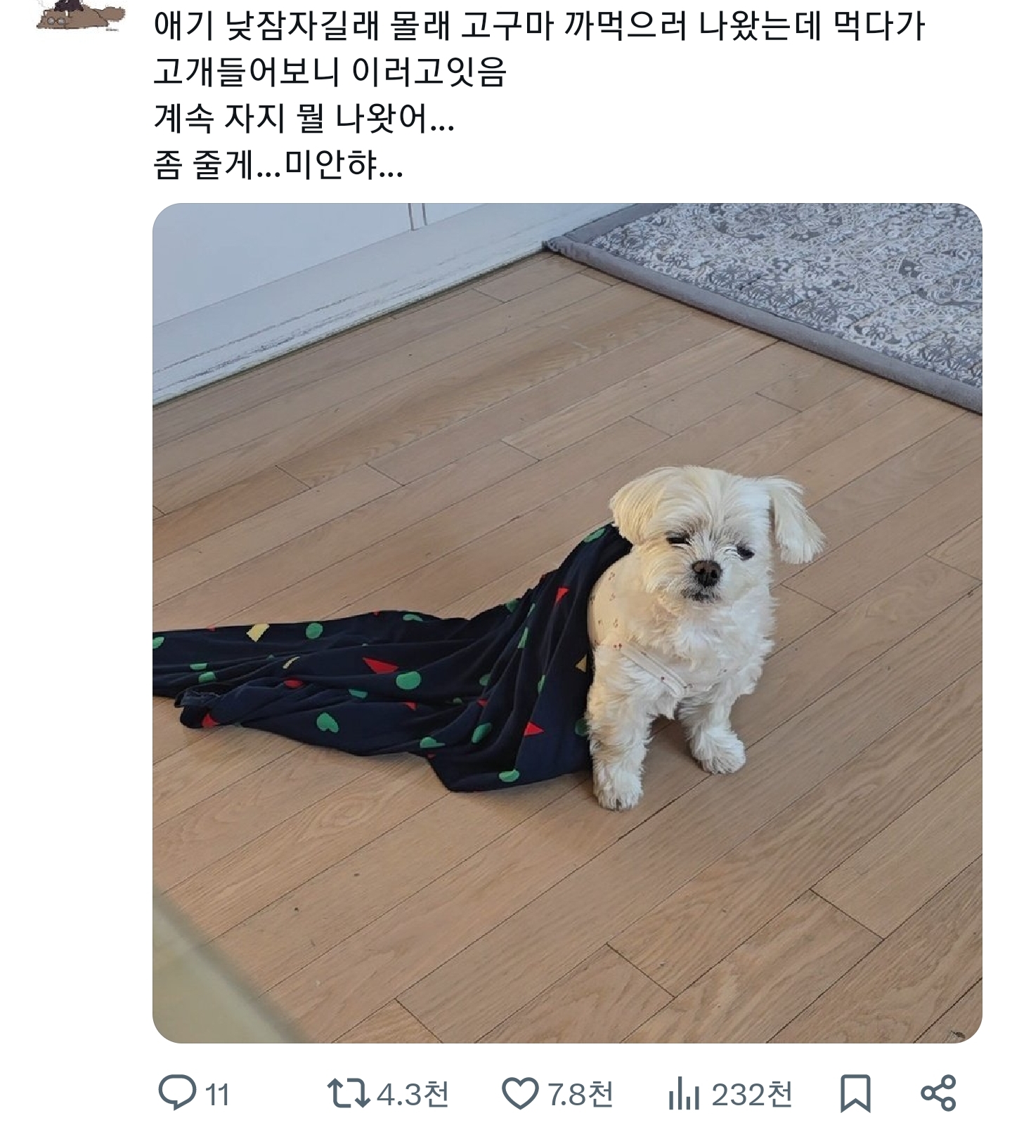 [흥미돋]애기 낮잠자길래 몰래 고구마 까먹으러 나왔는데 🍠🐶 작성자너너뉘기야|작성시간26.01.21|조회수44,257 목록 댓글 16 글자크기 작게가 글자크기 크게가 출처: https://x.com/i/status/2013509144947704301X의 꼬미🐾니안님(@Naineh0)애기 낮잠자길래 몰래 고구마 까먹으러 나왔는데 먹다가 고개들어보니 이러고잇음 계속 자지 뭘 나왓어... 좀 줄게...미안햐...x.com표정ㅋㅋㅋㅋㅋㅋㅋㅋㅋㅋㅋㅋㅋㅋㄱㅇㅇ 다음검색 현재 게시글 추가 기능 열기 북마크 공유하기 신고 센터로 신고 댓글 댓글 16 댓글쓰기 답글쓰기 댓글 리스트 작성자졸리고 또 졸리고 졸리다 | 작성시간 26.01.21 미안..... 작성자겨 울 | 작성시간 26.01.21 ㄱㅇㅇㅋㅋㅋㅋㅋㅋㅋㅋ큐ㅠㅠㅠㅠㅠㅠ 작성자세입만 먹을게 | 작성시간 26.01.21 진짜 미침 ㅠㅠ ㄱㅇㅇ 작성자칷 씨 | 작성시간 26.01.21 졸려죽겠는데 고구마냄새는 나서 먹고는싶고ㅋㅋㅋ 작성자격노요괴윤석열 | 작성시간 26.01.21 ㅋㅋㅋㅋㅋ 졸귀 댓글 전체보기