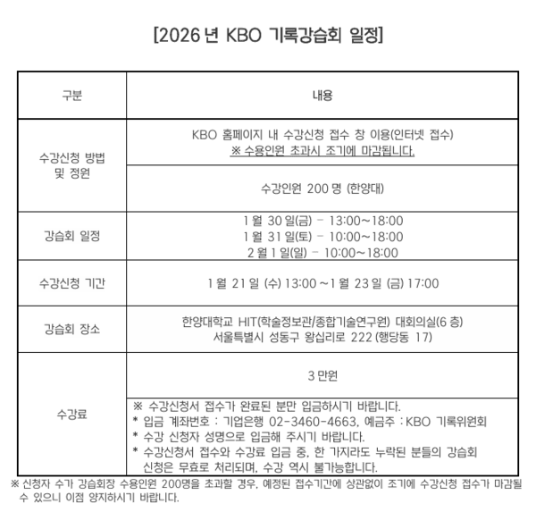'44년 역사' KBO 기록강습회 오는 30일 한양대서 개최…21일부터 이틀간 수강 신청