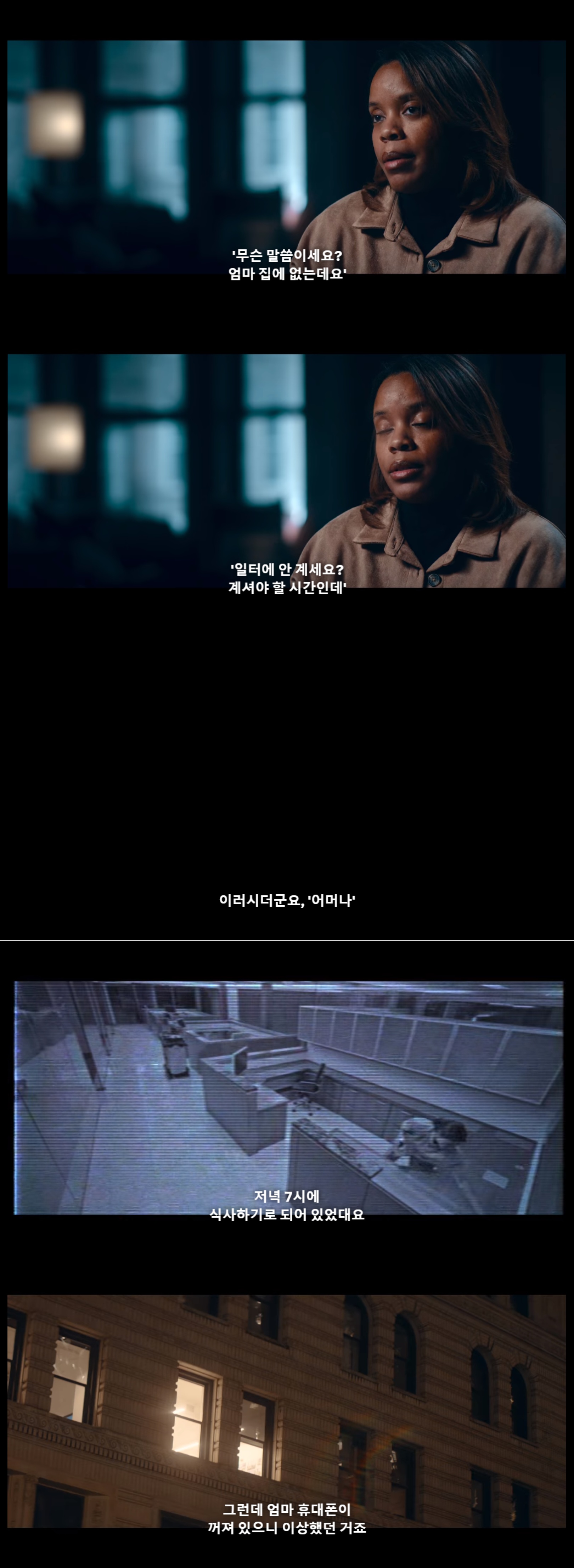 저녁 7시면 엄마가 일터에서 한창 일할 시간인데 갑자기 사라지고