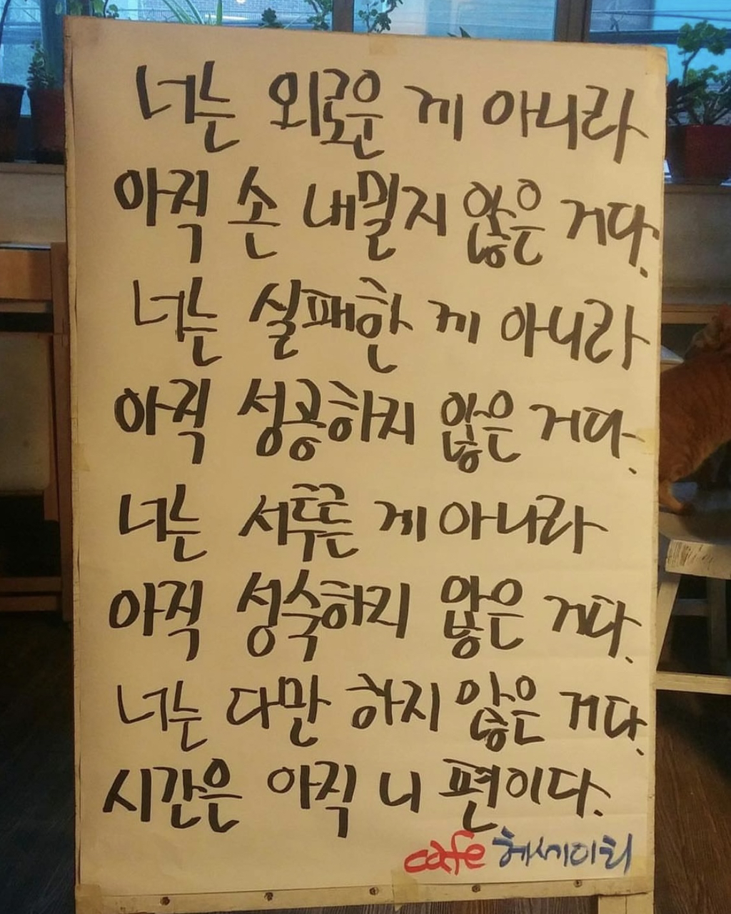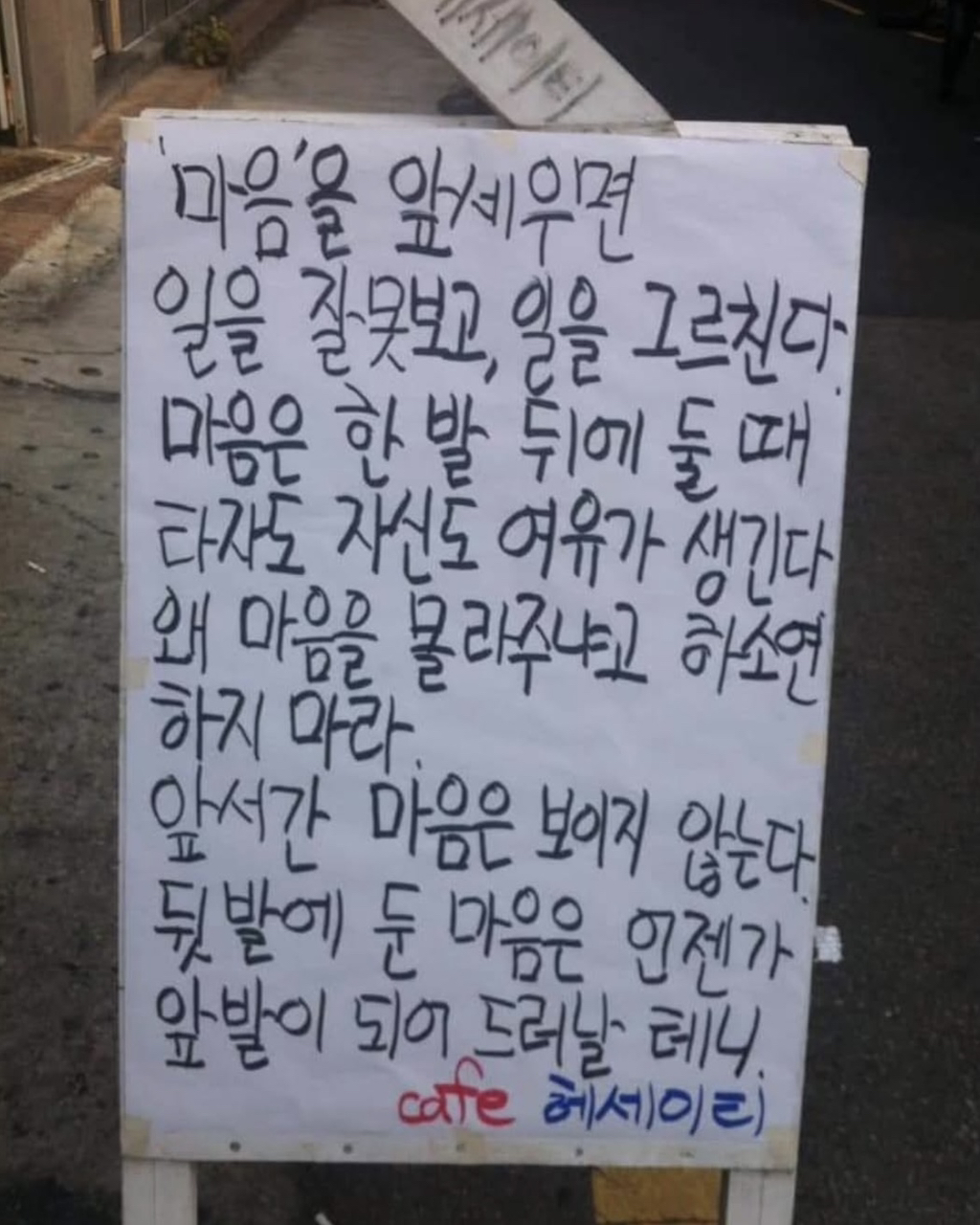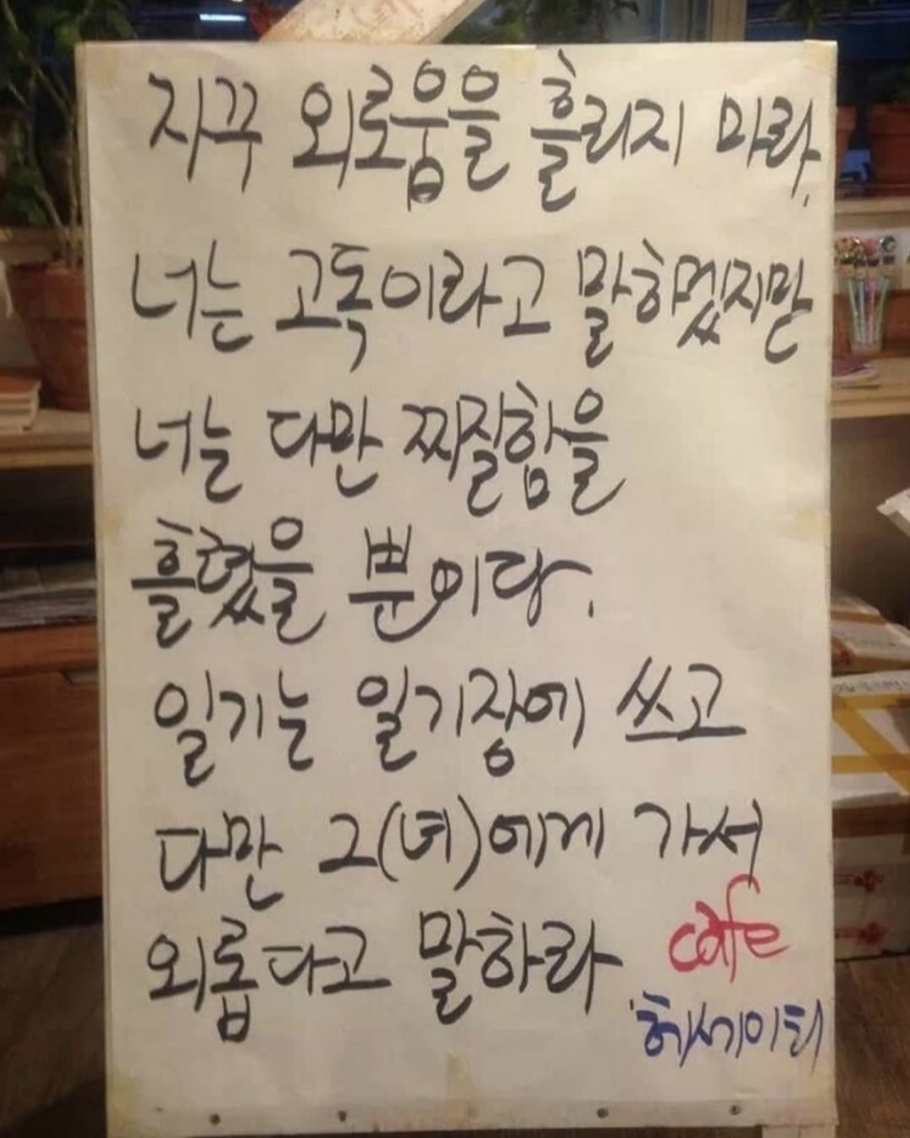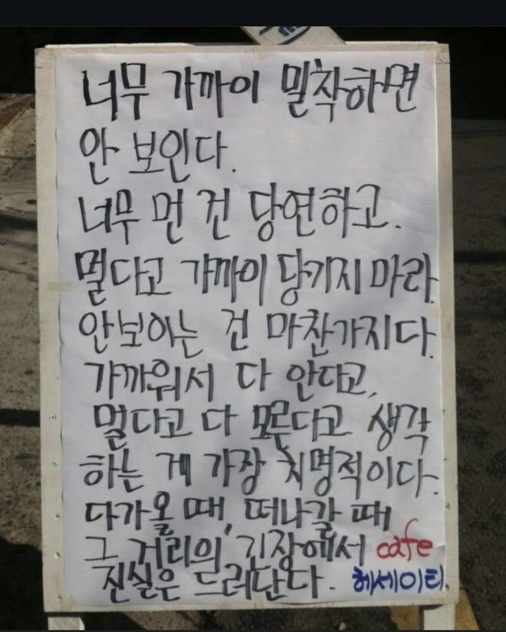 [흥미돋]황경민 시인의 카페 헤세이티 작성자비참한가요그럼나는어땠을까요|작성시간26.01.21|조회수3,535 목록 댓글 5 글자크기 작게가 글자크기 크게가 출처: 여성시대 비참한가요그럼나는어땠을까요중앙대 문예창작과 출신 황경민 시인이 운영하던 카페 헤세이티부산대에 위치해 시가 적혀있는 입간판으로 유명세를 타다, 현재 건강악화로 문을 닫았으며운영 10년동안 2000건이 넘는 간판 글귀를 썼다고 알려짐 다음검색 현재 게시글 추가 기능 열기 북마크 공유하기 신고 센터로 신고 댓글 댓글 5 댓글쓰기 답글쓰기 댓글 리스트 작성자졸업앨범 | 작성시간 26.01.21 오 그런거였구나 작성자조리퐁리 | 작성시간 26.01.21 와 글귀 조타… 작성자근육빵빵 | 작성시간 26.01.21 좋다 작성자미니멀하려고 | 작성시간 26.01.21 헐 아쉽다... 작성자허름한헤세 | 작성시간 26.01.21 어머 시인이셨구나.. 댓글 전체보기