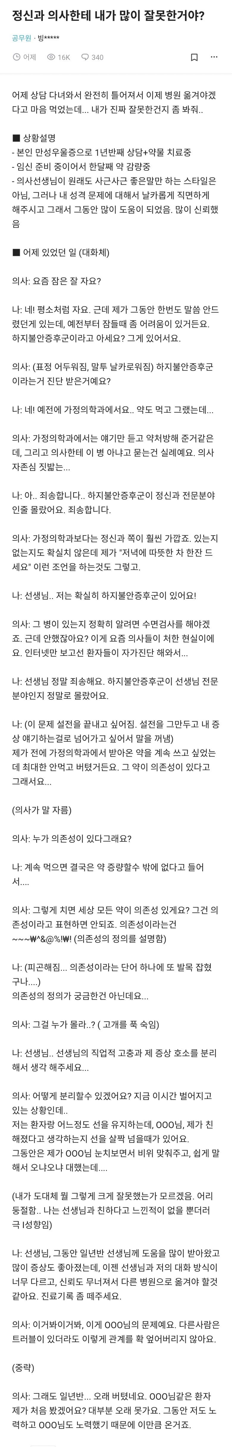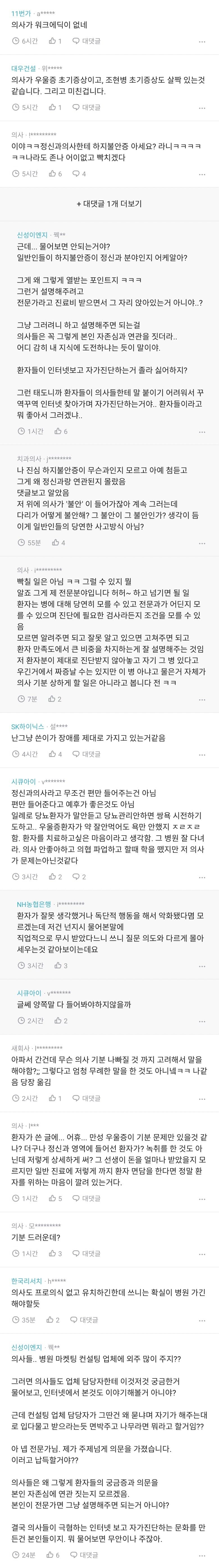 [스크랩] [흥미돋]정신과 의사한테 내가 많이 잘못한 거야?.blind 작성자나무기차|작성시간26.01.21|조회수41,445 목록 댓글 224 글자크기 작게가 글자크기 크게가 출처 : 여성시대 술래키키출처-https://www.teamblind.com/kr/post/정신과-의사한테-내가-많이-잘못한거야-0odxRuJW 다음검색 스크랩 원문 : *여성시대* 차분한 20대들의 알흠다운 공간 현재 게시글 추가 기능 열기 북마크 공유하기 신고 센터로 신고 댓글 댓글 224 댓글쓰기 답글쓰기 댓글 리스트 작성자오렌지만다린 | 작성시간 26.01.23 글쓴이가 뭘 잘못함? 이해가 안가네 작성자니가몰알아hh | 작성시간 26.01.23 정신과 의사가 저렇게 감정적이어서 어캄? 본인이 병원 가봐야 할 듯 작성자나일론 머스크 | 작성시간 26.01.23 의사가 저렇게 하니까 작성자e음카드 | 작성시간 26.01.25 왜저래 의사 존나 예민하고 감정적이다 저런 스트레스 안받게 얼른 ai로 대체됐으면 작성자뽀오 | 작성시간 26.01.31 의사들 싸가지 좃나없음 댓글 전체보기