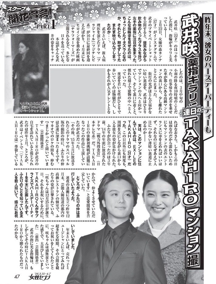 타케이는 결혼&임신 발표 후 "이제 편안하다"라고 말했다고 함
