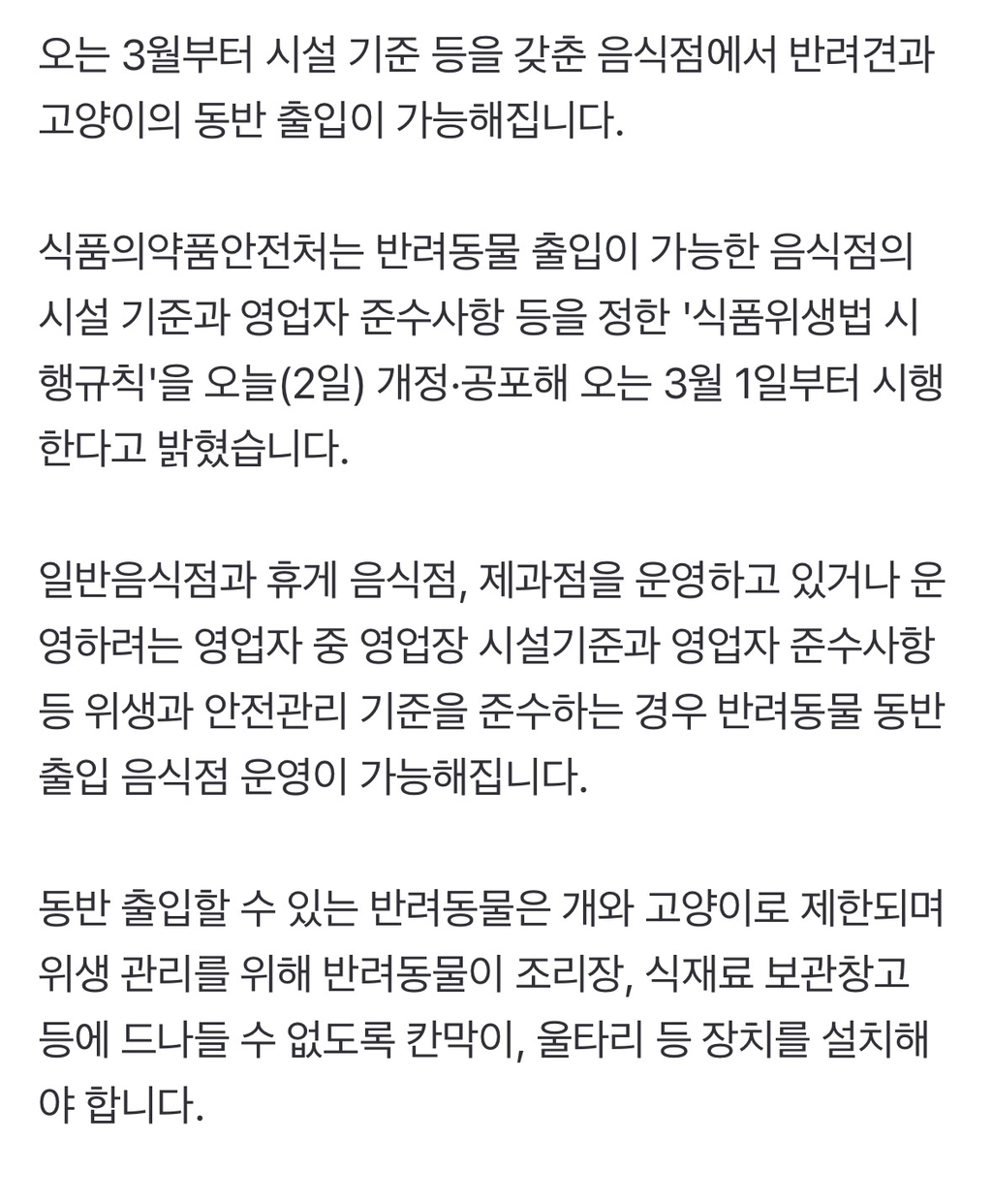 3월1일부터 영업자는 식약처가 제시한 수칙만 준수하면