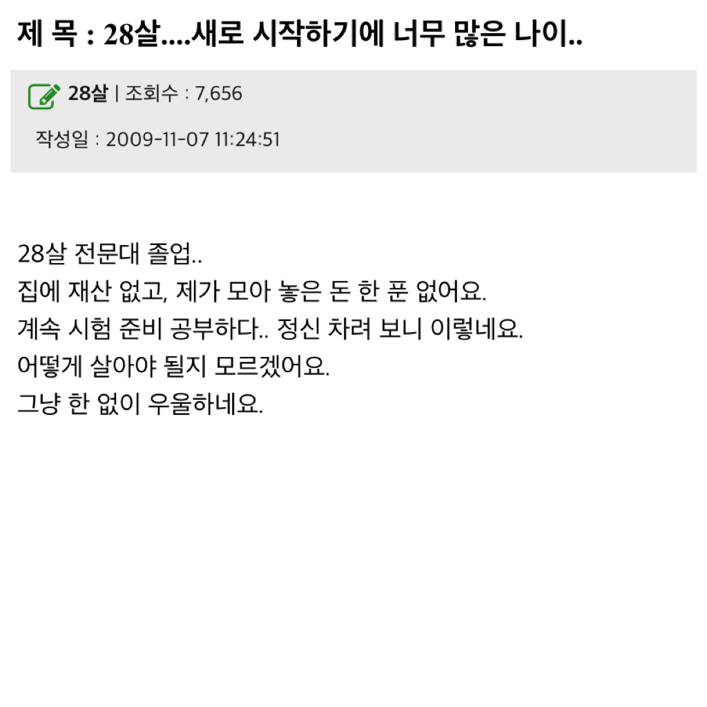 여기서 또 미루면 그때가 진짜 늦는 거지. 20대 후반이든 30대든 현실적으로 전혀 끝난 나이 아님. -